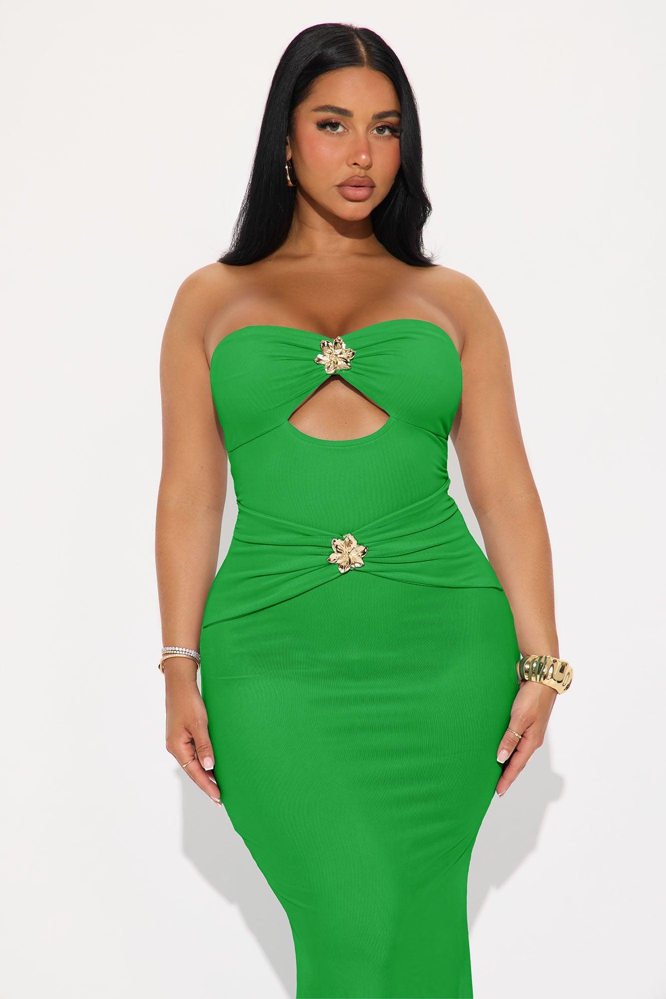 Available In Blue, Kelly Green And Mauve. Mesh Maxi Dress Strapless Sweetheart Neckline Floral Hardware Details Cut Out Lined Stretch Self: 95% Polyester 5% Spandex Lining: 95% Polyester 5% Spandex Imported California Proposition 65WARNING: Cancer and Reproductive Harm - www.P65Warnings.ca.gov.