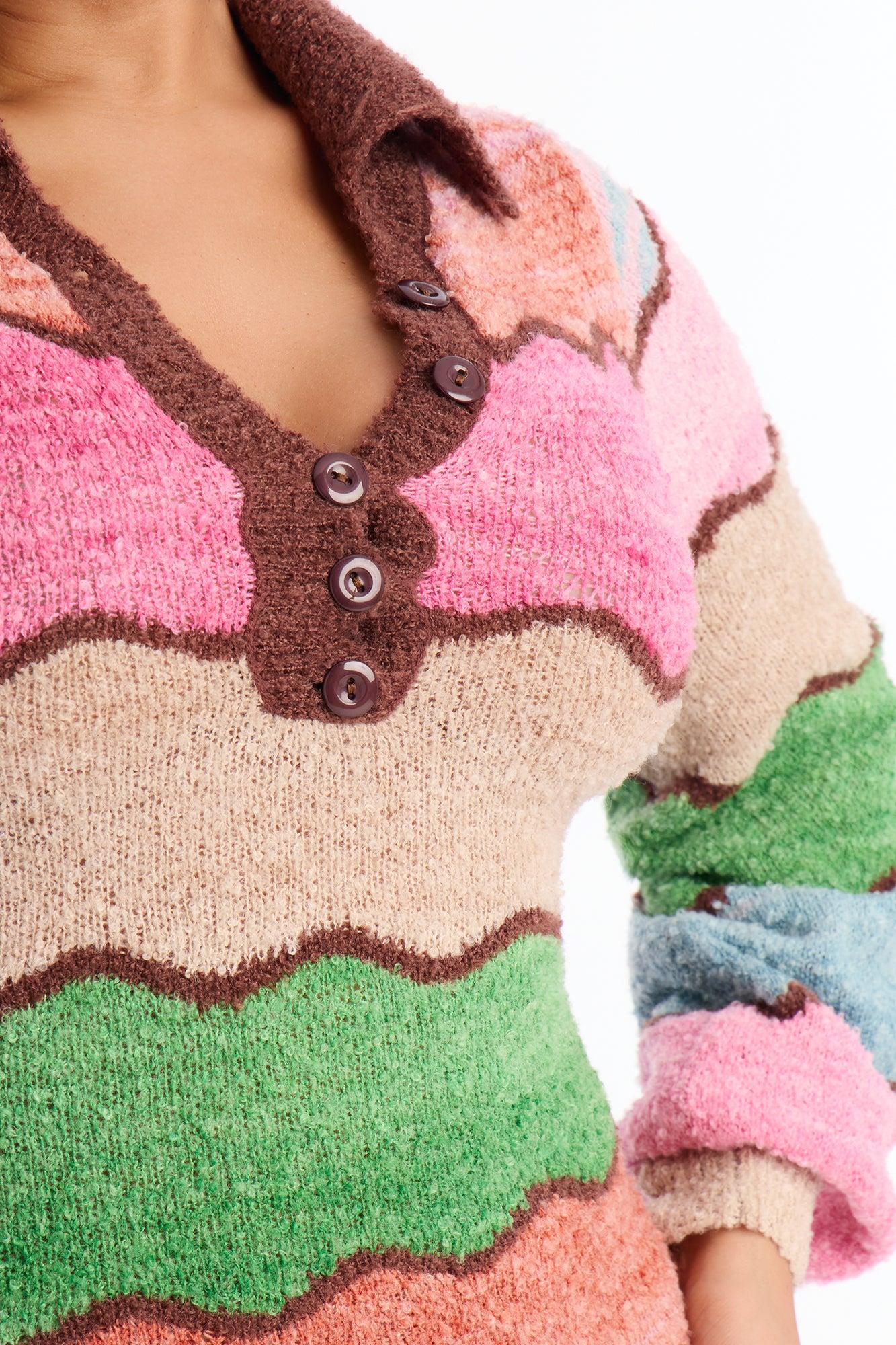 Available In Pink/combo. Sweater Mini Dress Collar Long Sleeve Button Up Stretch Length Measured Flat = 34" Disclaimer: Pattern Placement May Vary. Self: 100% Polyester Imported