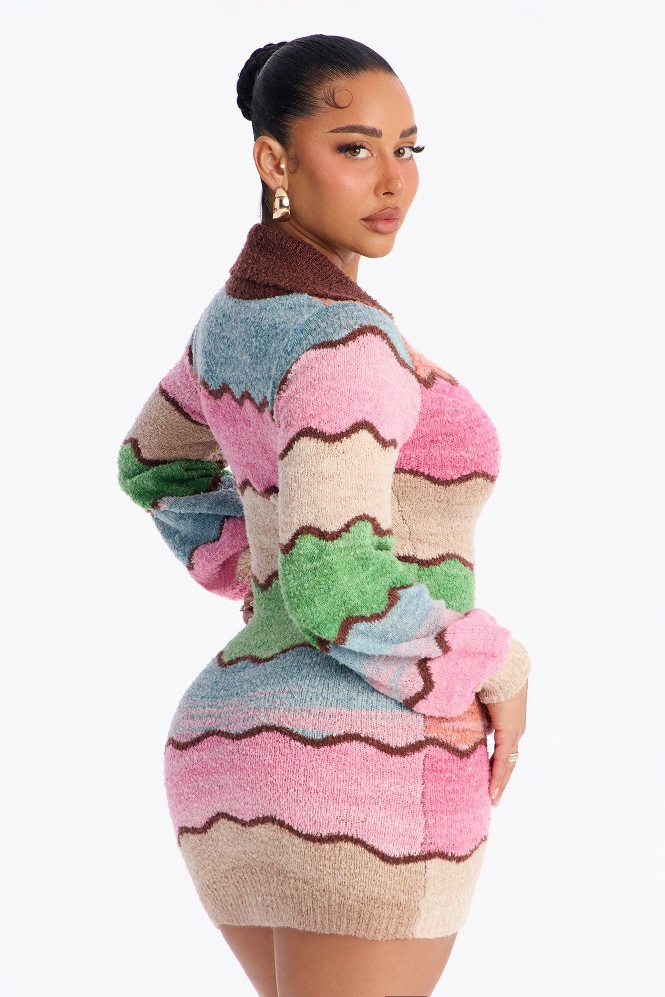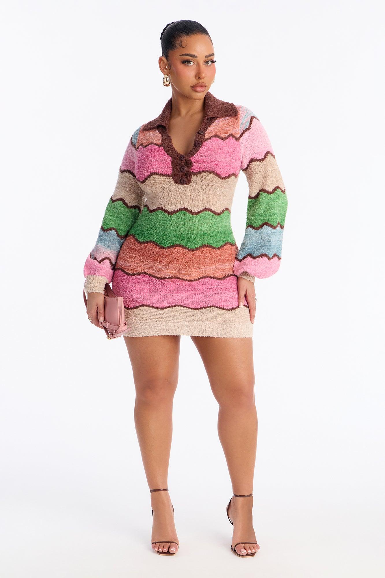 Sweet Treat Long Sleeve Sweater Mini Dress - Pink/combo Female