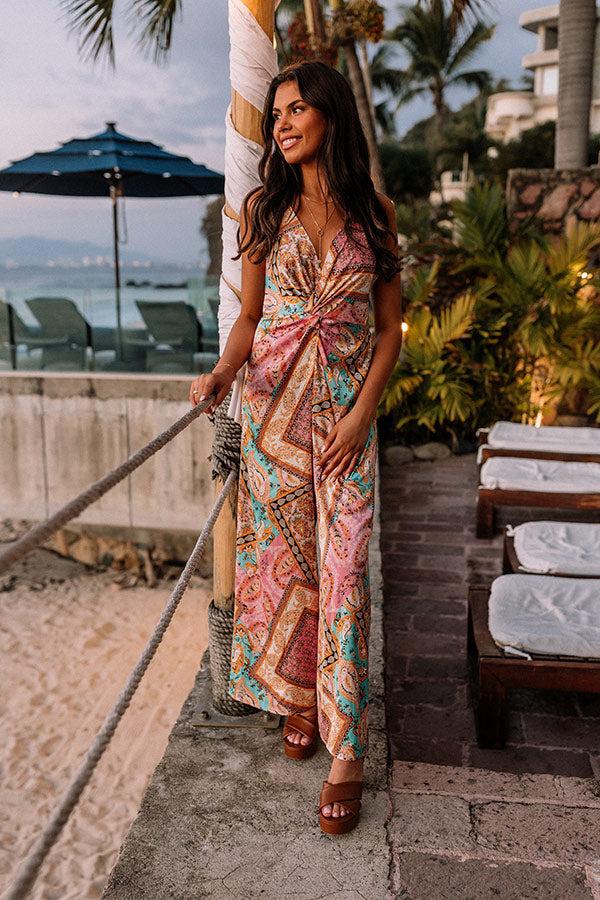 – Jump into style effortlessly in this stunning piece – Unlined lightweight material – Patterned with an abstract paisley print – V-cut neckline with a front tie accent – Adjustable spaghetti straps with a straight smocked back – Relaxed pants silhouette that ends in straight hemlines Measurements S : Bust 30", Hip 32", Inseam 27.5", Length 51", Waist 24-26". M : Bust 32", Hip 34", Inseam 27.5", Length 51", Waist 26-28". L : Bust 34", Hip 36", Inseam 28", Length 51.5", Waist 28-30".