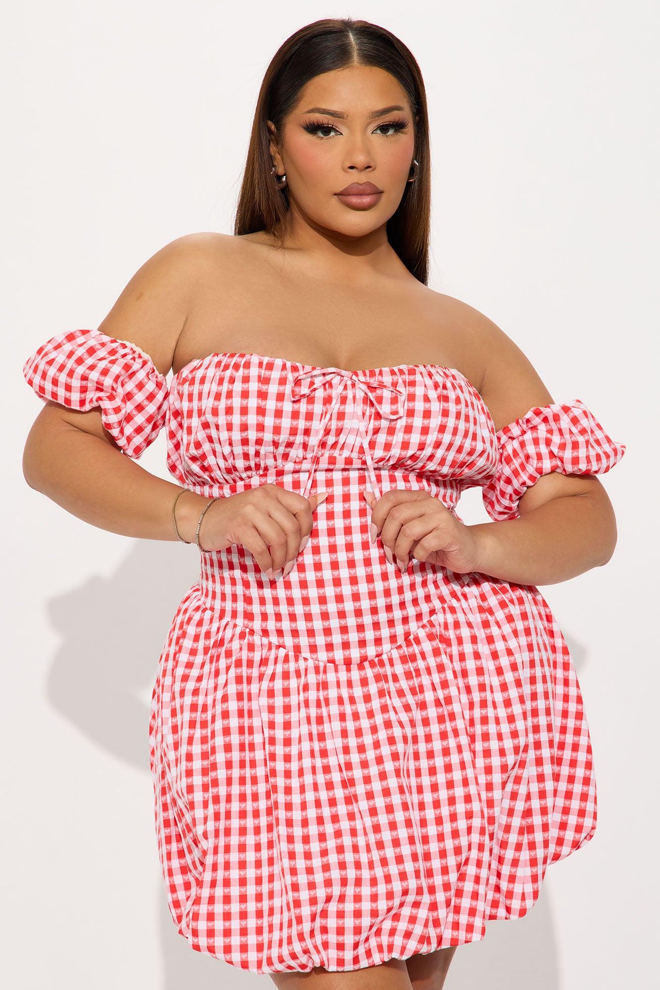 Sweetheart Gingham Bubble Mini Dress - Red