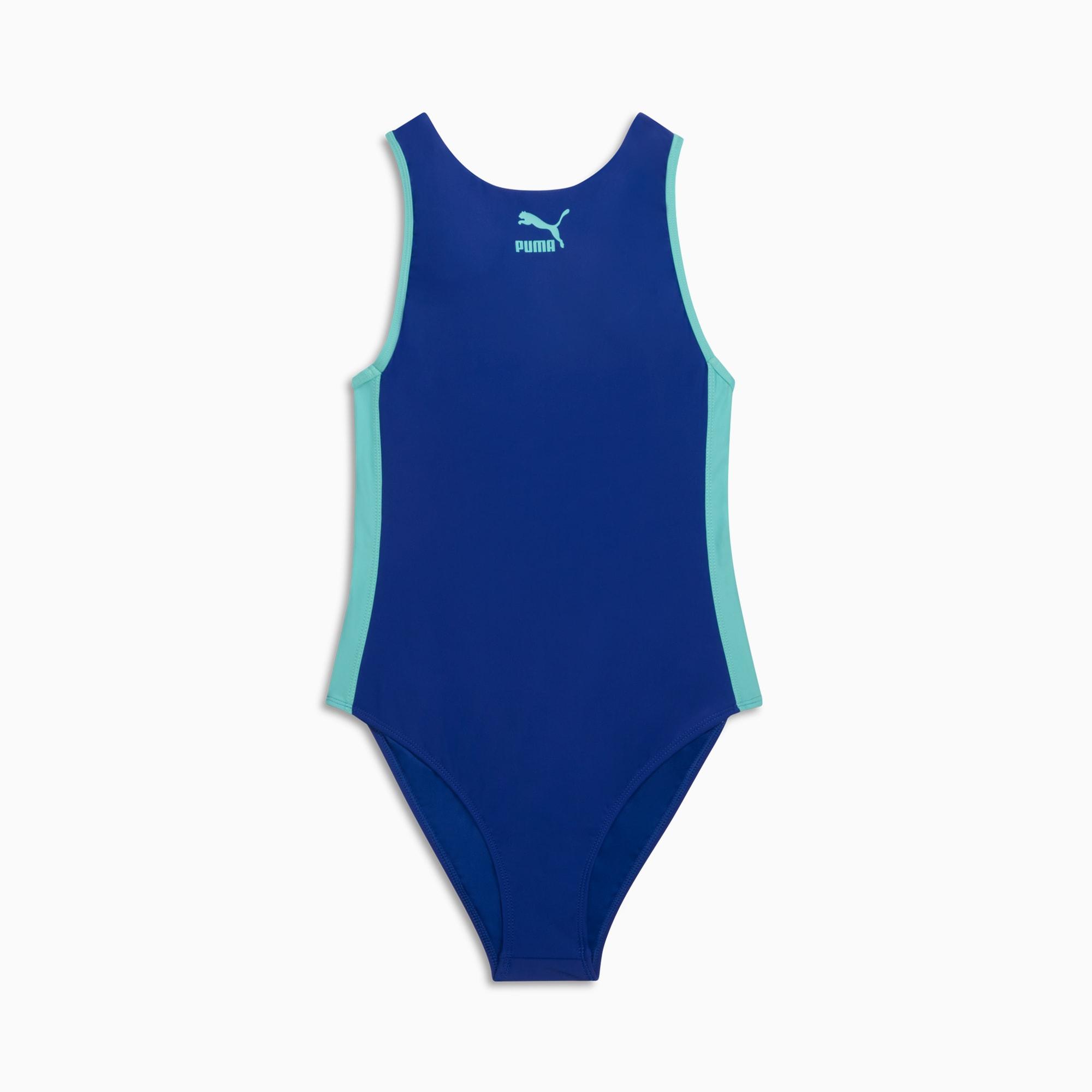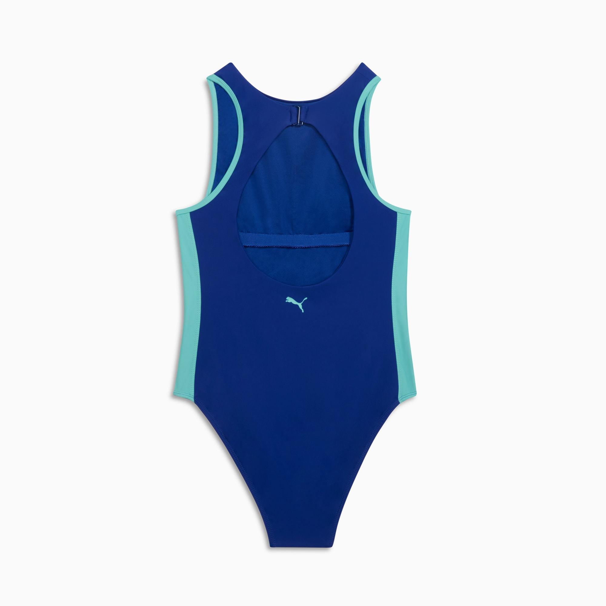 descriptionSoak up the sun by the pool or relax beachside with your favorite book with this one piece swimsuit, crafted from a mix of recycled materials for a step towards a better future.Style: 859253_02Color: VIVID BLUEfeatures & benefitsMade with recycled materialsdetailsPUMA branding detailsOne piece designHigh neck