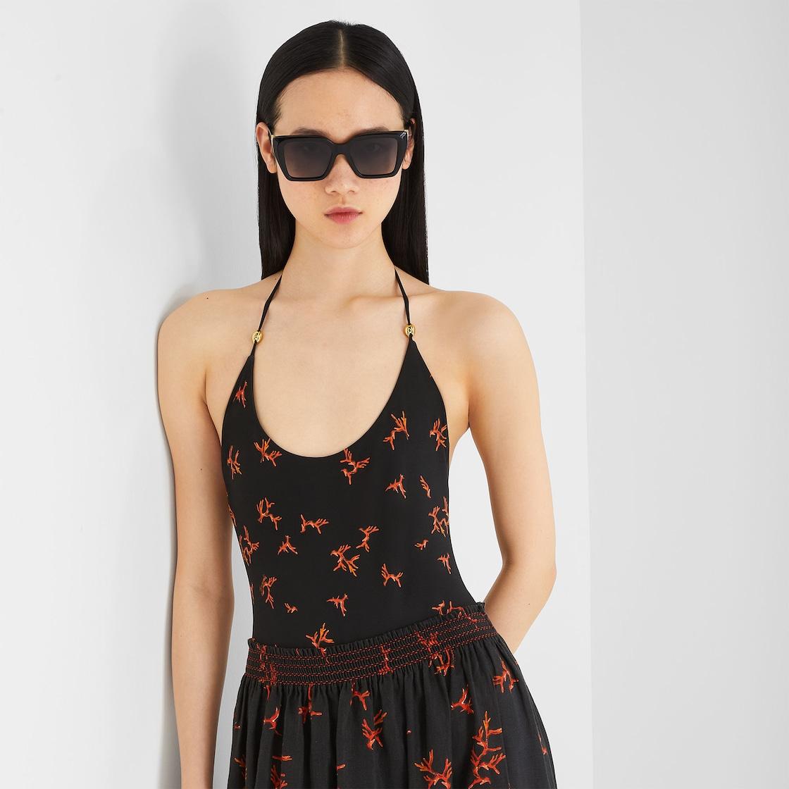 SwimsuitBlack Lycra® one-piece swimsuit with coral print