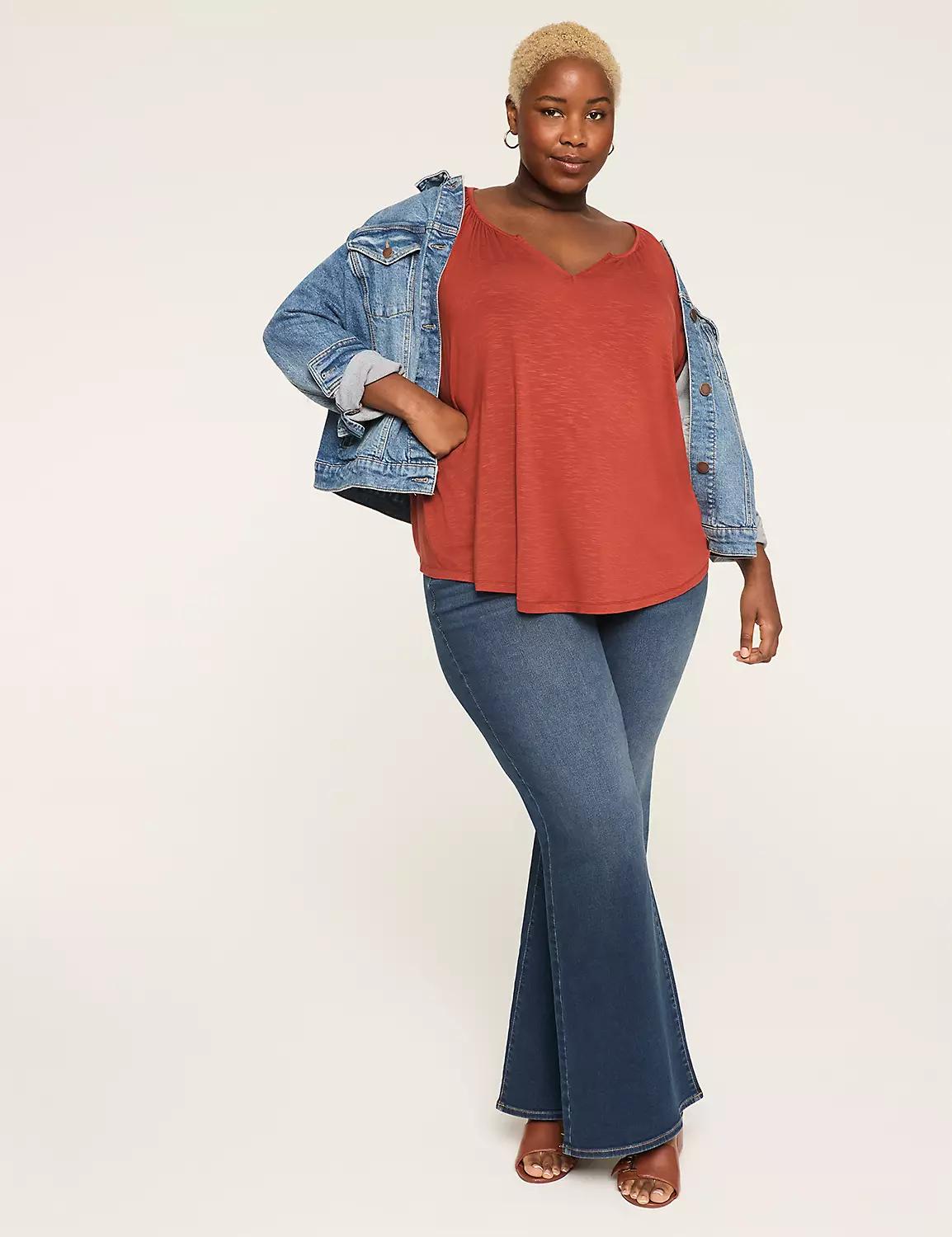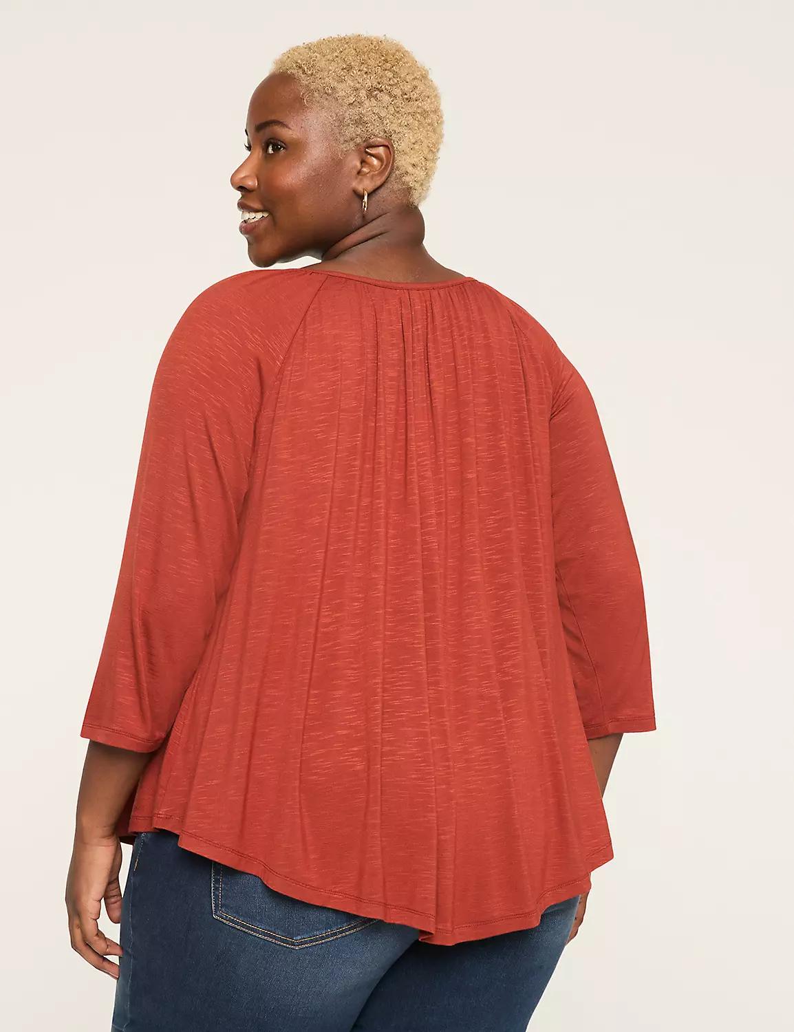 Swing 3/4-Sleeve Notch-Neck Top