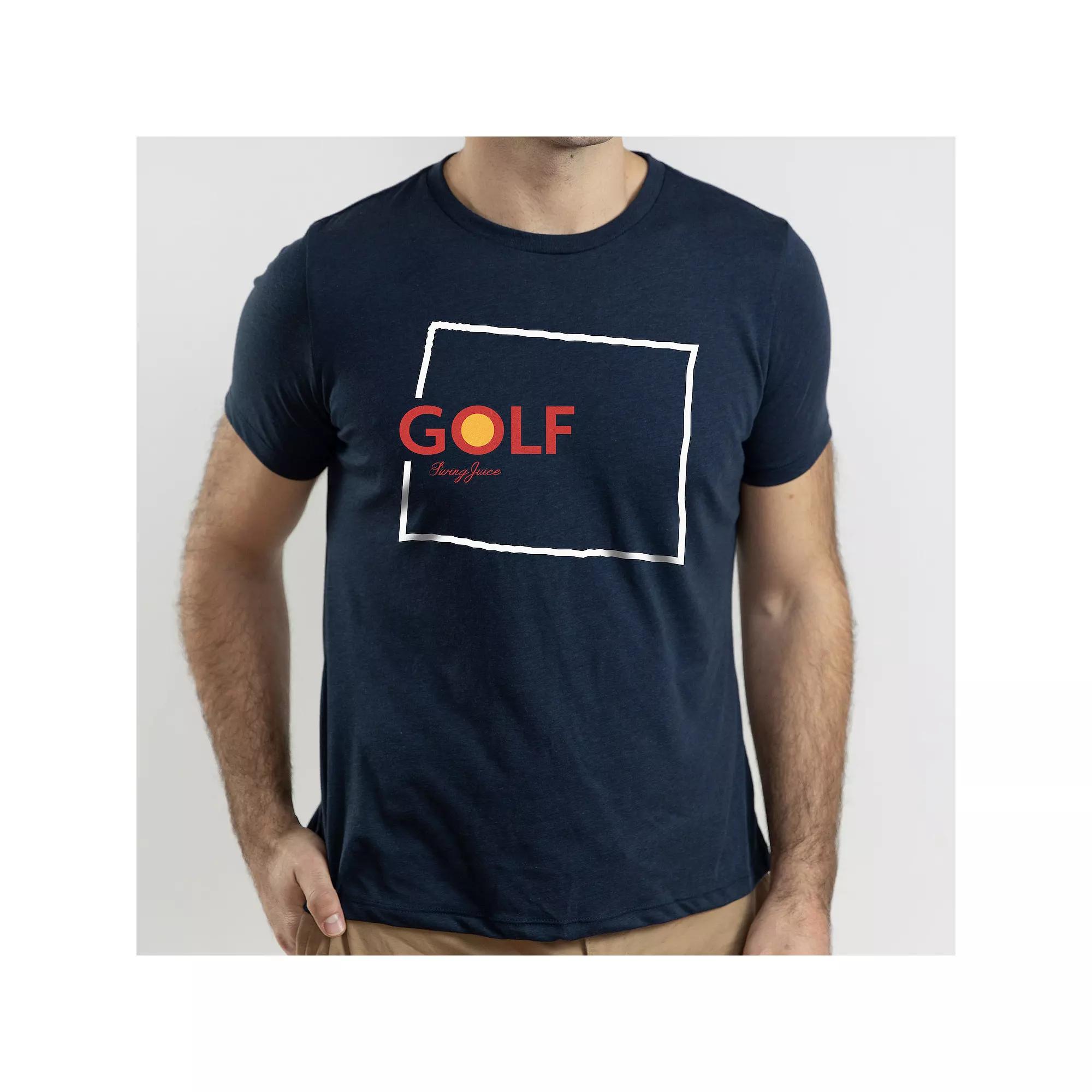 Show off Rocky Mountain pride with the SwingJuice Golf Colorado T-Shirt from the States Collection. Crafted from soft triblend fabric, it’s a comfortable, durable choice for any golf fan. Click on this MEN'S GUIDE to find the perfect fit and more!FEATURES Short sleeveFIT & SIZING Classic fitFABRIC & CARE Polyester, cotton, rayon Machine wash Imported Size: XL. Color: Navy. Gender: male. Age Group: adult.