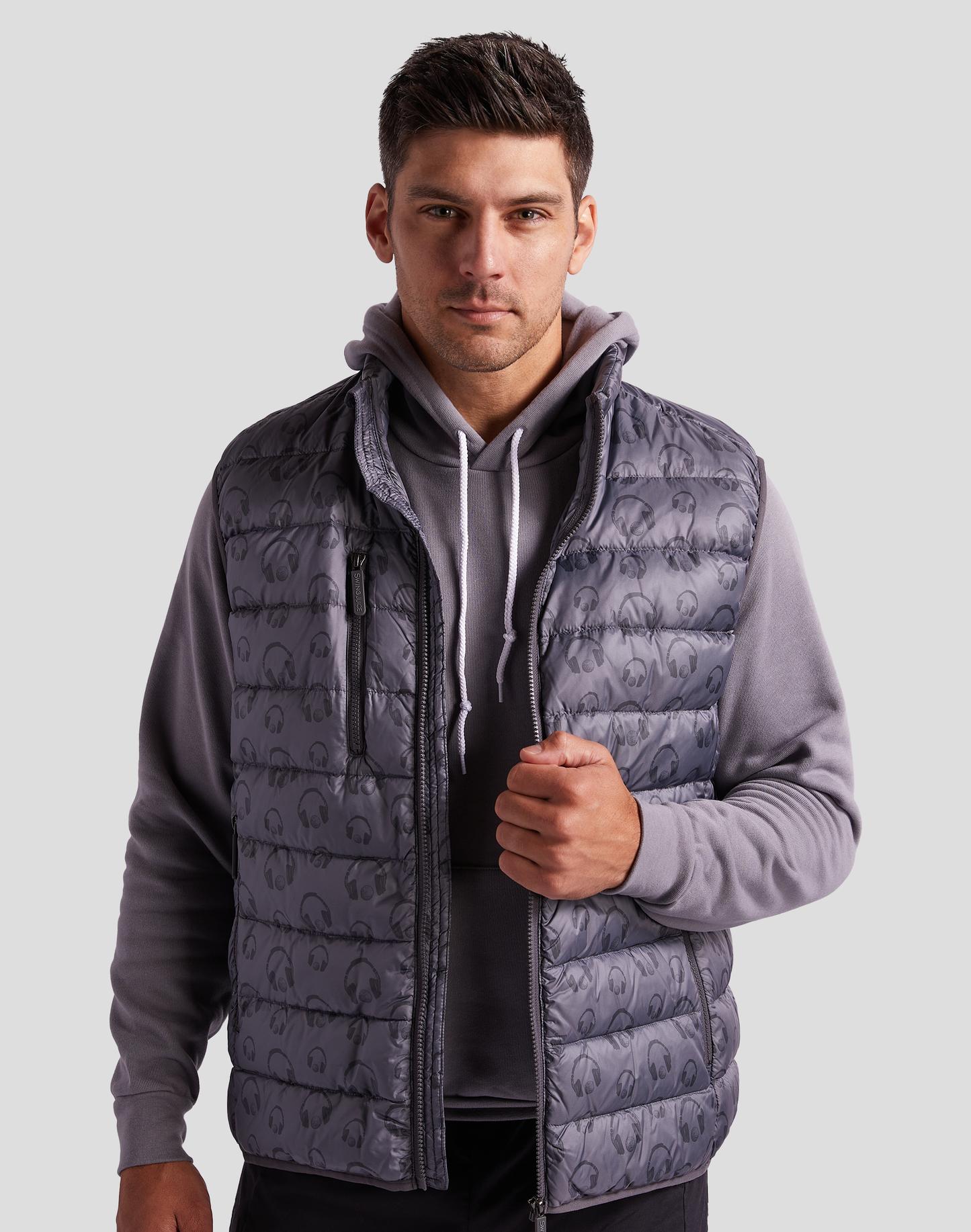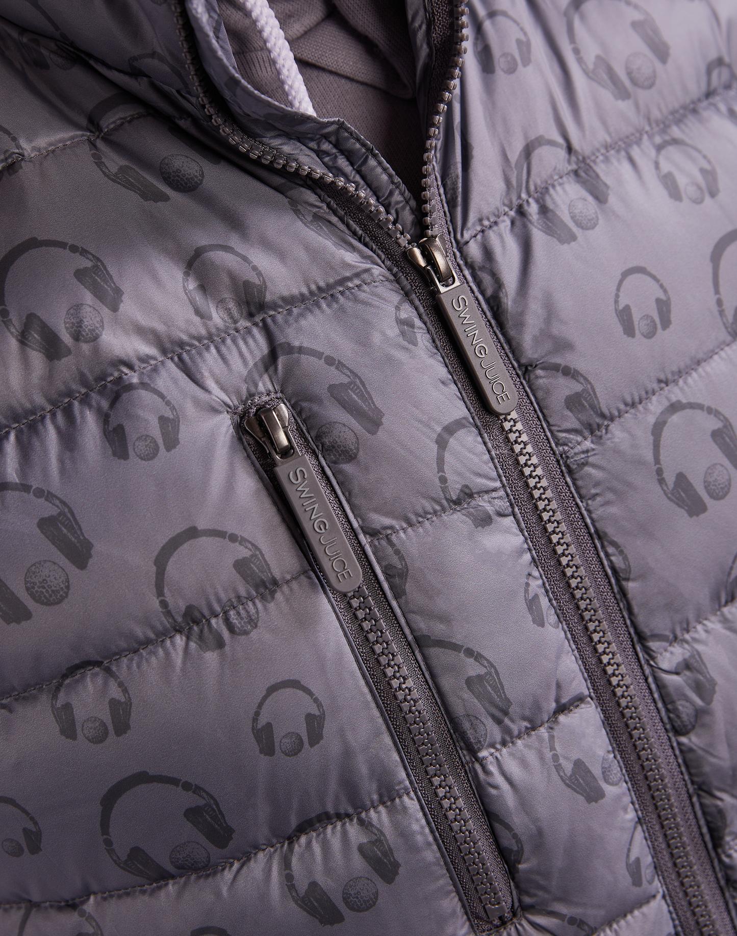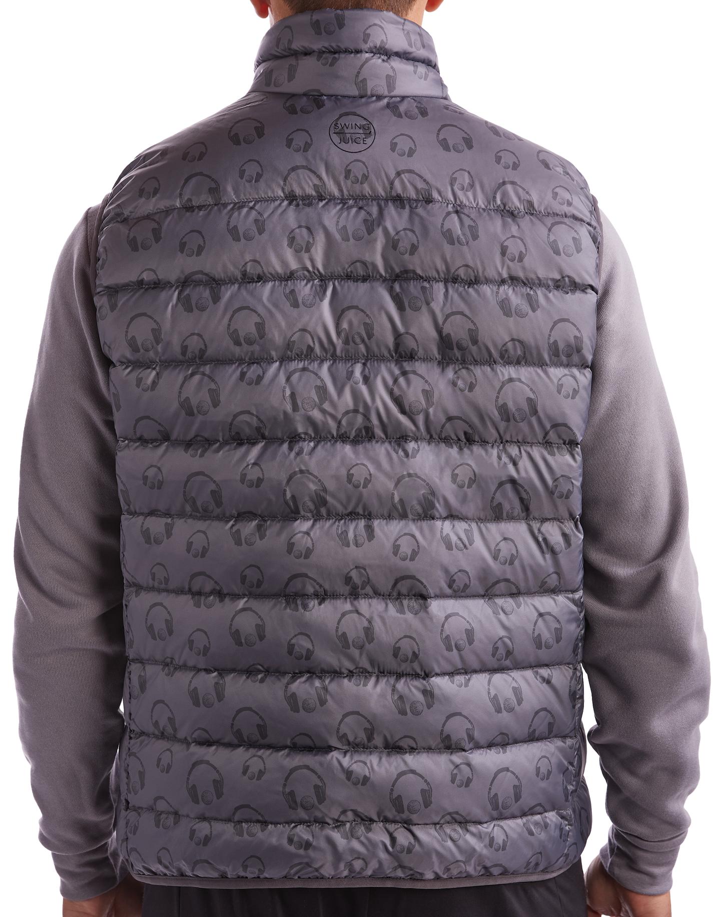 Blend your love for golf and hip hop with the Golf & Hip Hop Men's Packable Puffer Vest. This stylish vest features a design with headphones and a golf ball, perfect for those who enjoy mixing their game with some beats. Lightweight and packable, it includes a matching storage pouch for easy travel. Design featuring headphones and a golf ball Water-resistant, quilted technical fabric Secure zippered exterior pockets with a hidden phone sleeve Interior pockets hold the essentials Sleek polyester shell with a soft hand-feel 80% Grey Duck Down, 20% Feather filling Classic hip-length fit with room for layering Turtleneck and sleeveless design Front Zip Closure with Zipper Guard Comes with a matching 10" long cylindrical pouch for easy packing Shell: 100% Polyester; Lining: 100% Polyester; Filling: 80% Grey Duck Down, 20% Feather Hand wash cold, do not bleach