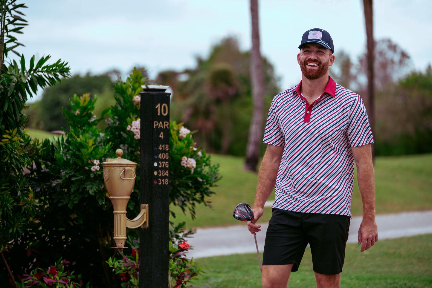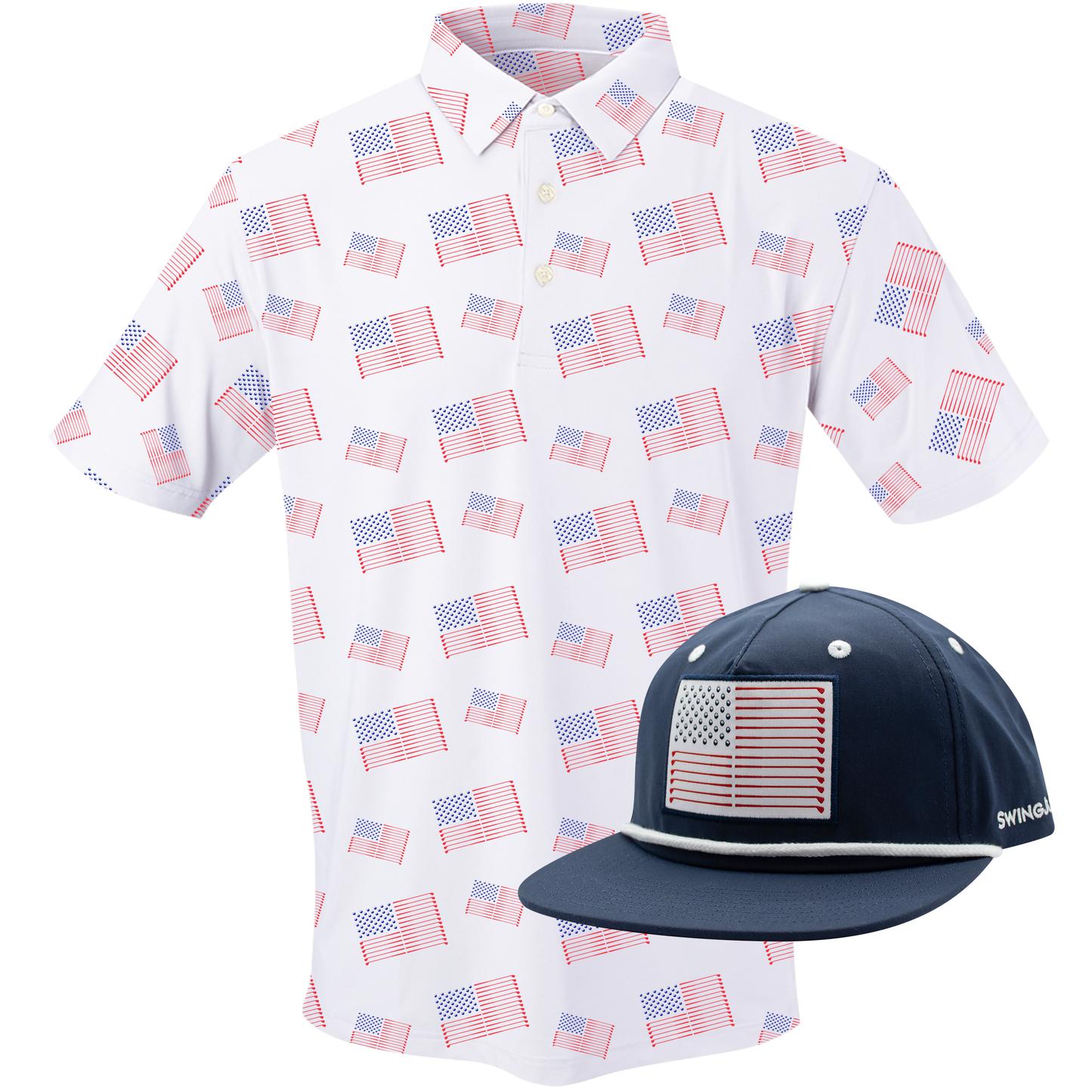 SwingJuice Men's Golf Flag Polo & Rope Hat Bundle