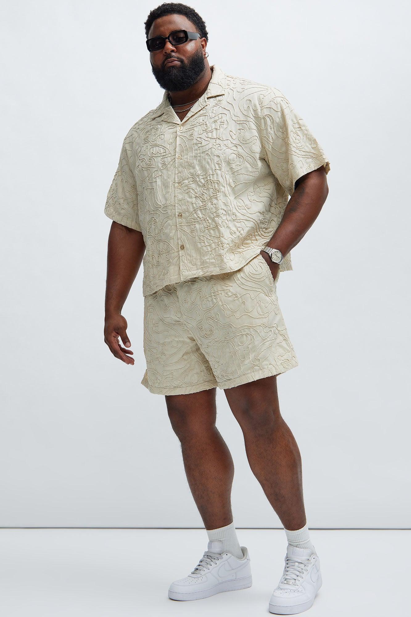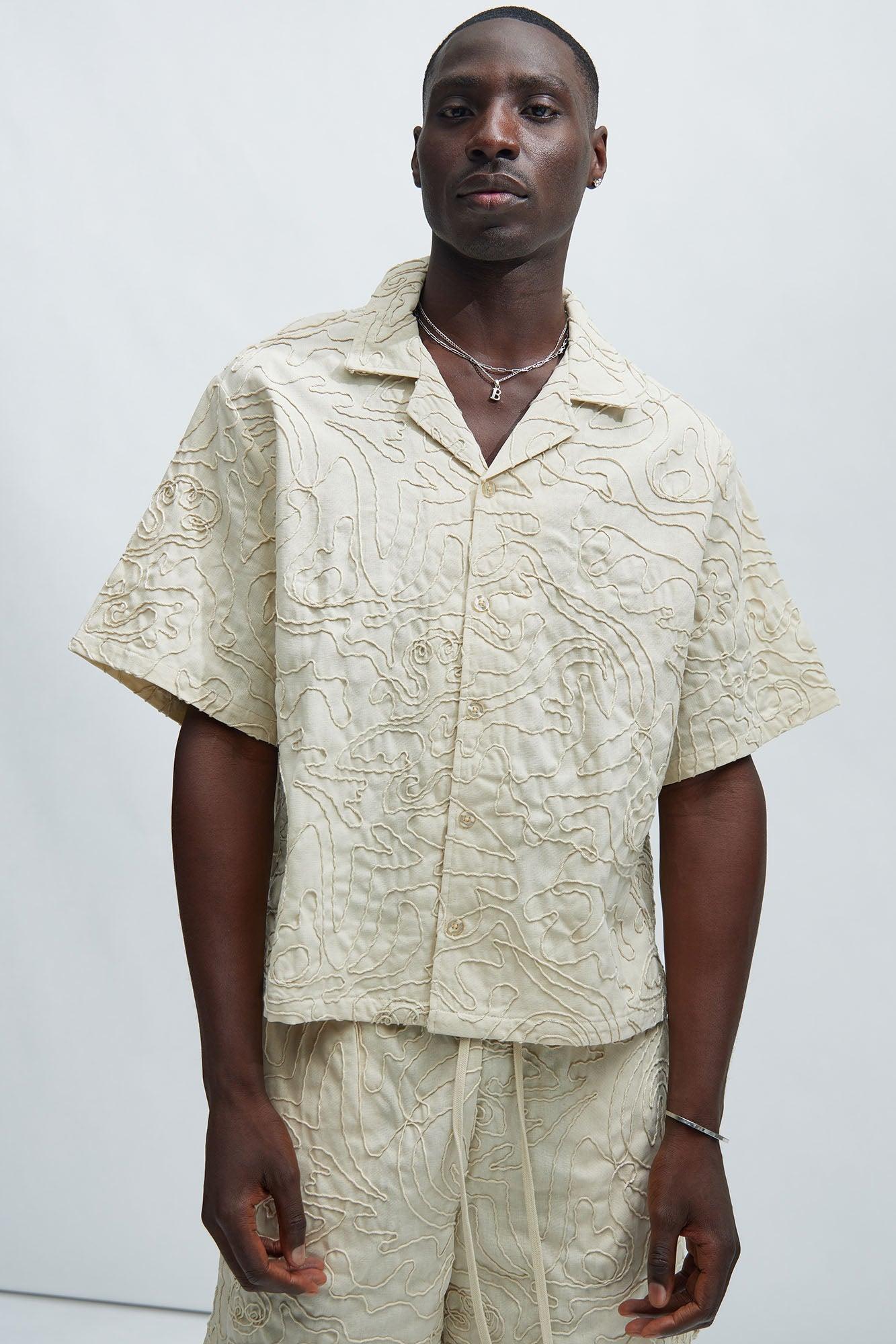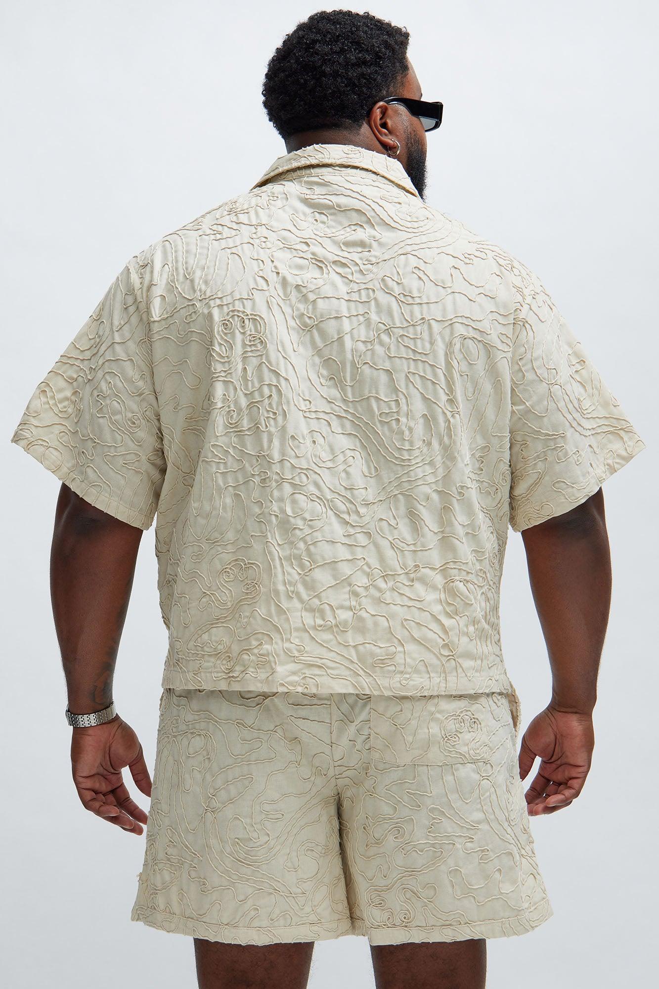 Available In Off White. Fold Down Collar Front Button Closure Short Sleeve Bottom Side Slit Pair With "Swirl Jacquard Linen Shorts" 57% Polyester 22% Viscose 14% Linen 4% Other 3% Cotton Imported