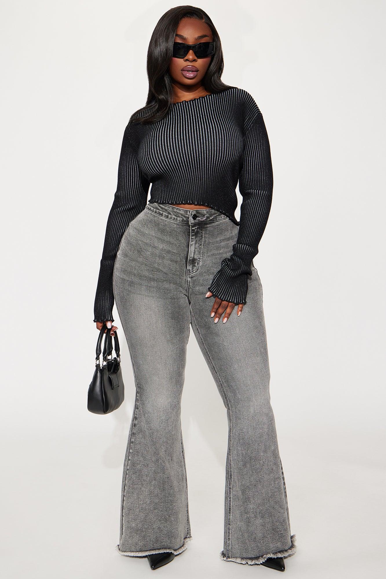 Available In Black. Pullover Sweater Long Sleeve Crew Neck Asymmetrical Cropped Washed Ribbed 44% Nylon 20% Polyester 18% Rayon 18% Acrylic Imported
