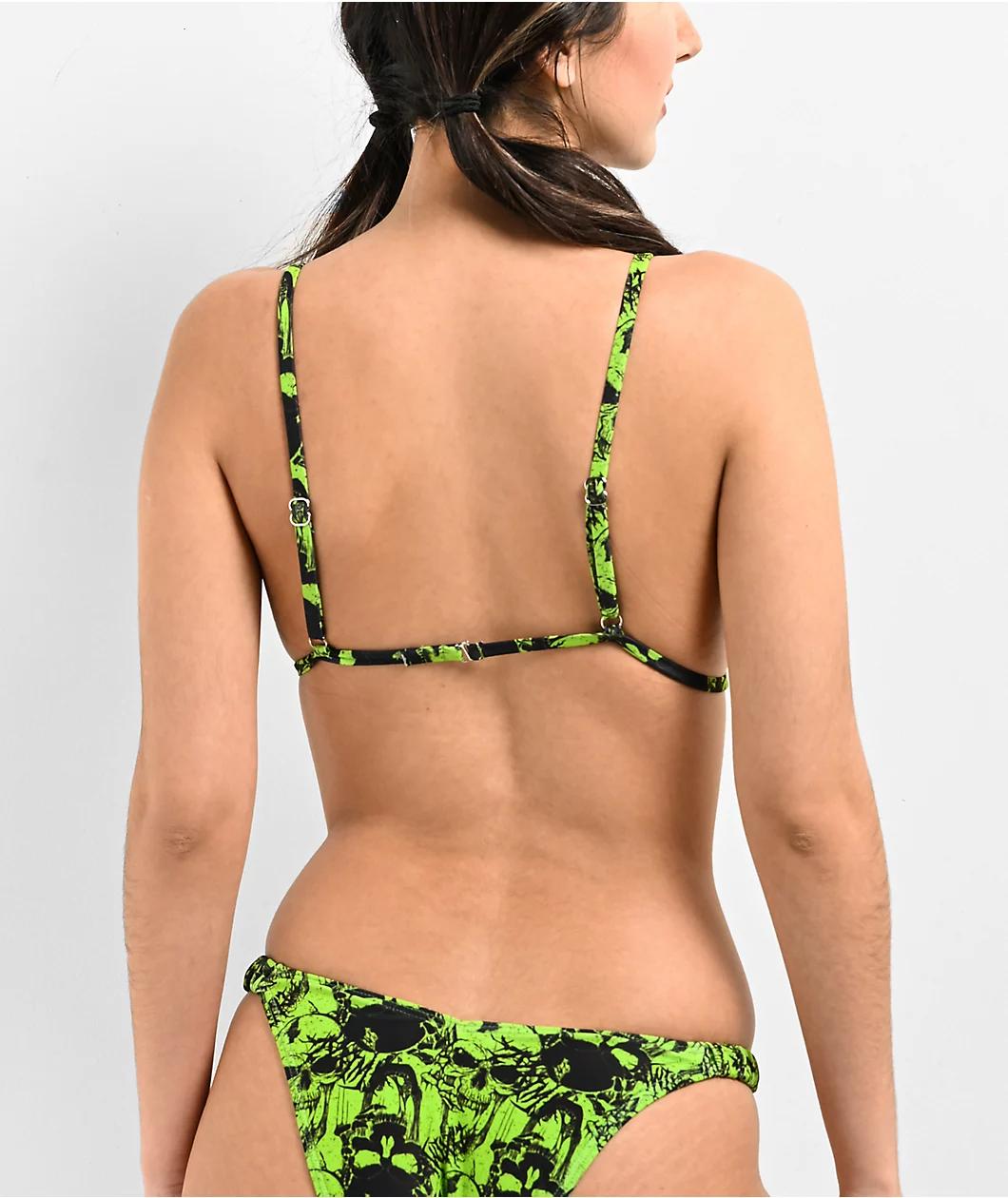 Featuring an edgy green print, the Grunge Skull bikini top from SWIXXZ is made using 4-way stretch fabric - delivering Maggie Lindemann's signature style with all-day comfort. The triangle design comes with removable padding, while elastic detailing