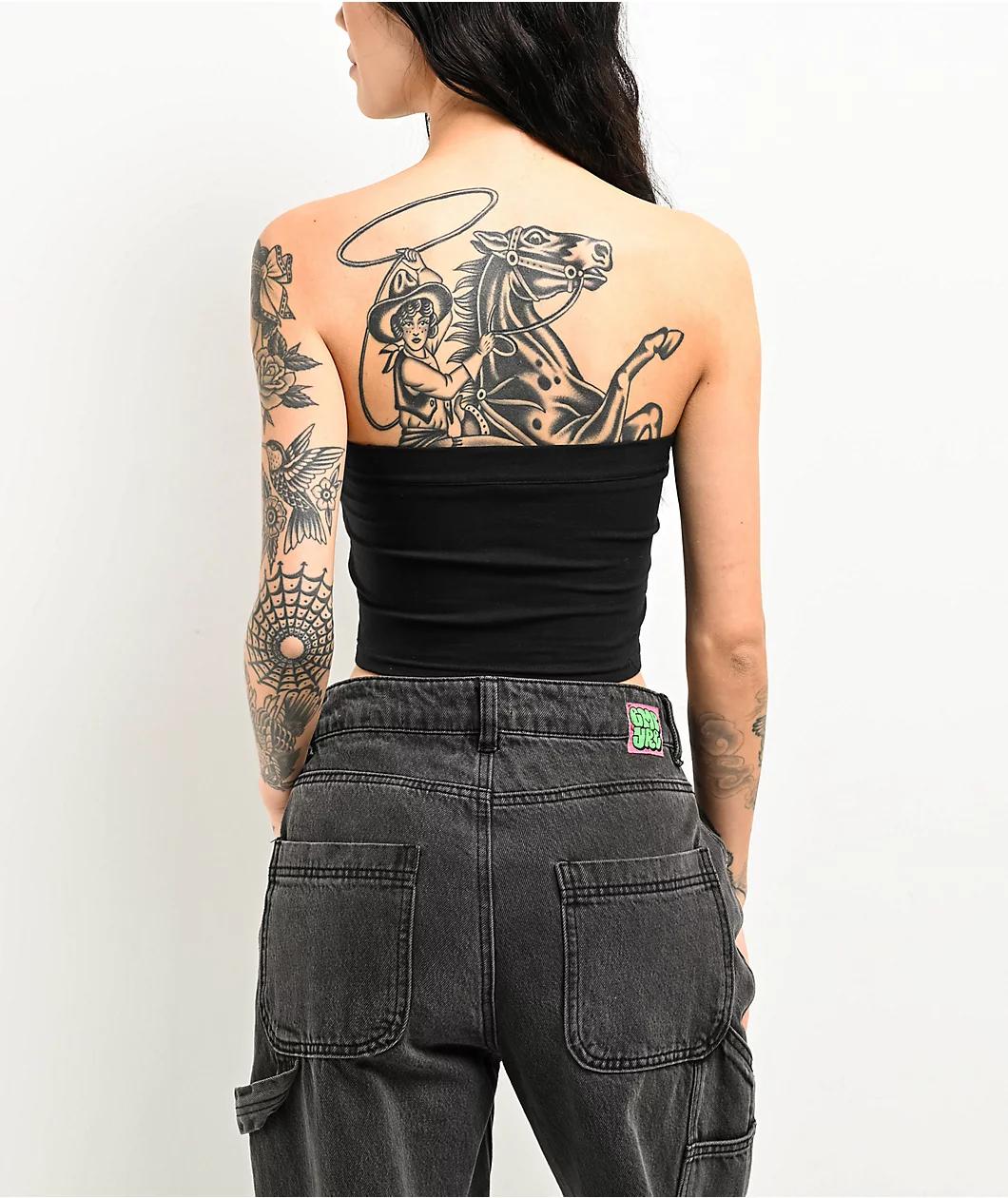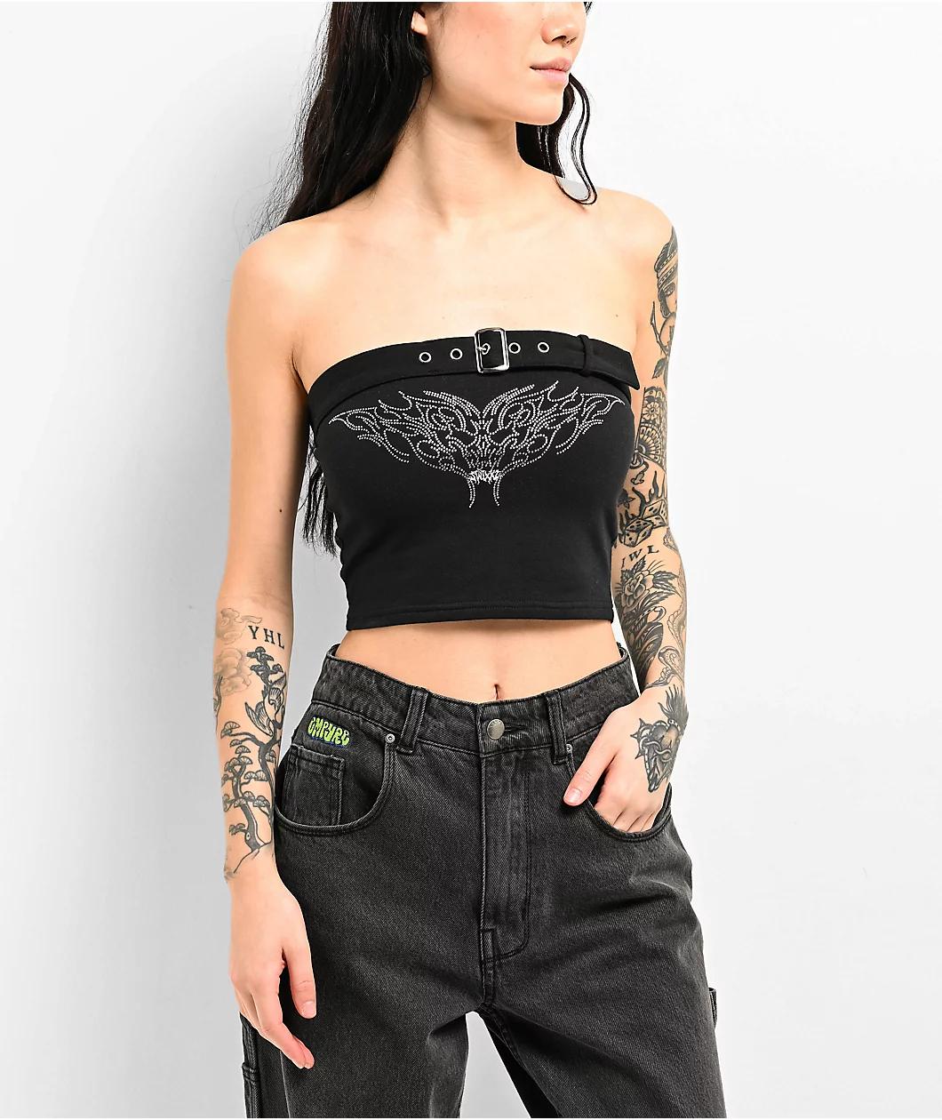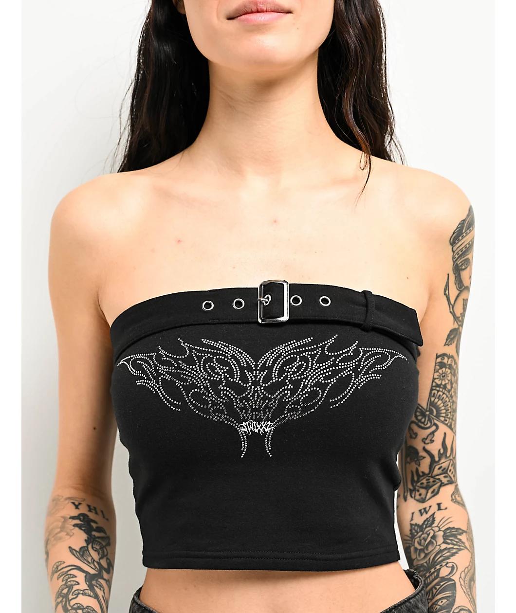 SWIXXZ Rhinestone Black Buckle Tube Top