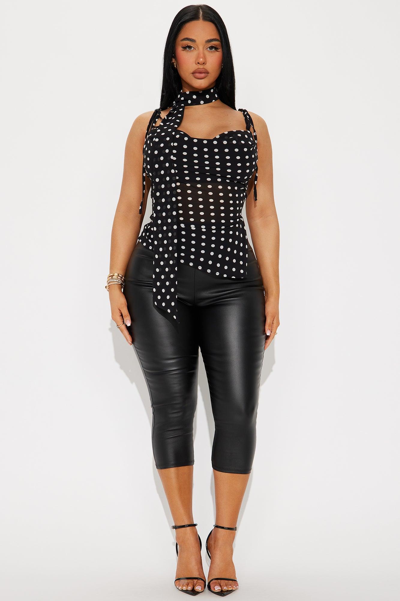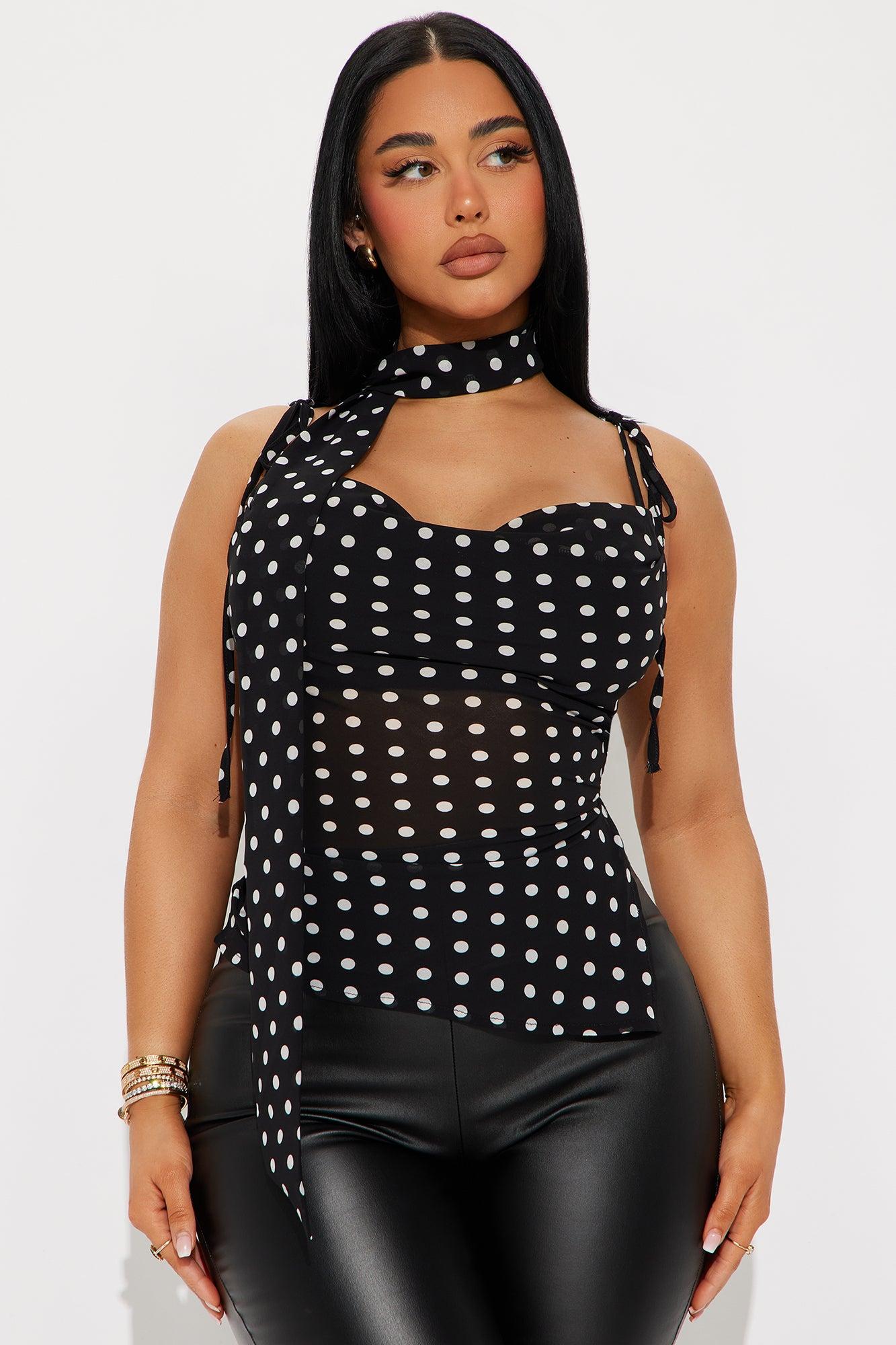 Sydnee Polka Dot Neck Tie Top - Black/White