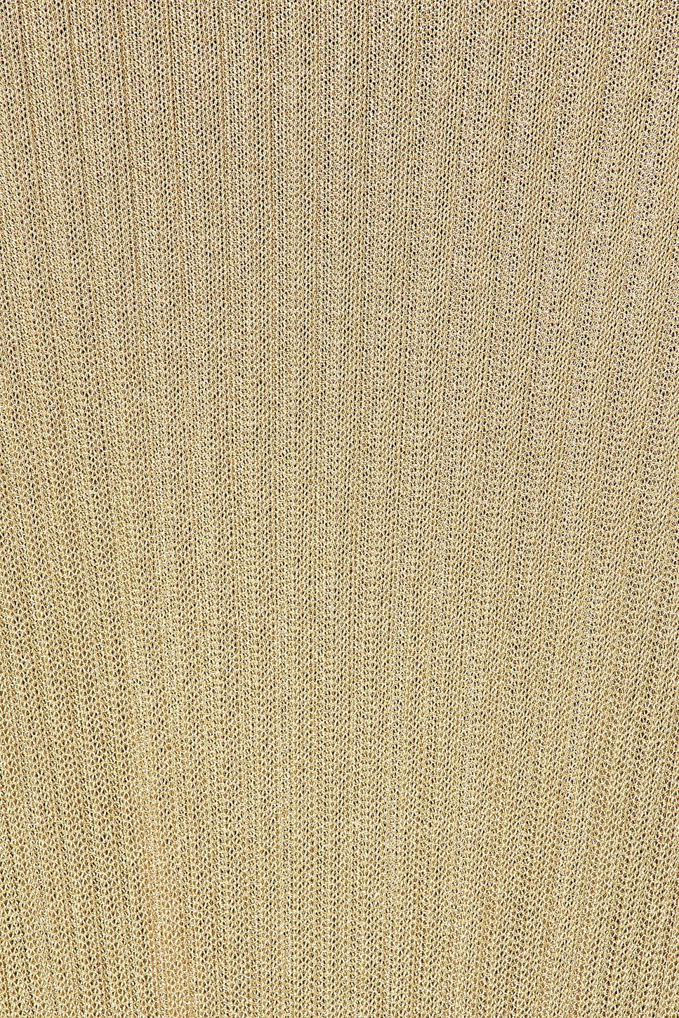 dressSelf: 67% viscose, 33% metallic fiberLining: 94% nylon, 6% spandex / Made in China / Dry clean only / Partially lined / Hidden back zipper closure / Fringe design at hem / Ribbed knit fabric with metallic threading / Our Style No. AKNF-WD58 / Manufacturer Style No. R25-4095-GOL / Model is wearing size S.