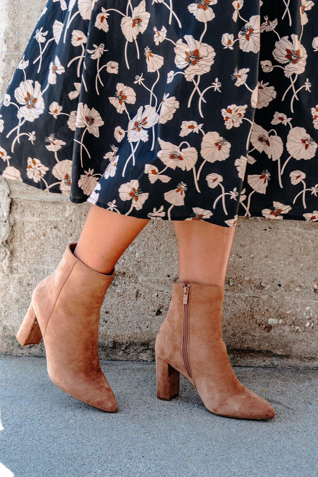 Elevate your everyday with The Sylvia Bootie. Crafted from luxe camel faux suede with a pointed toe and sleek 3.5" heel, this ankle boot adds just the right amount of edge. A side zip closure offers easy wear, while the clean silhouette makes it endlessly versatile—from denim to dresses.