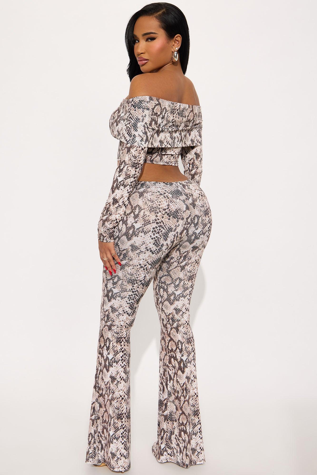 Available In Black/combo. 2 Piece Ensemble Cropped Off Shoulder Top And Flare Pant Set Stretch 34.5" Inseam Elastic Waistband Disclaimer: Print Placement Will Vary. 95% Polyester 5% Spandex Imported California Proposition 65WARNING: Cancer and Reproductive Harm - www.P65Warnings.ca.gov.
