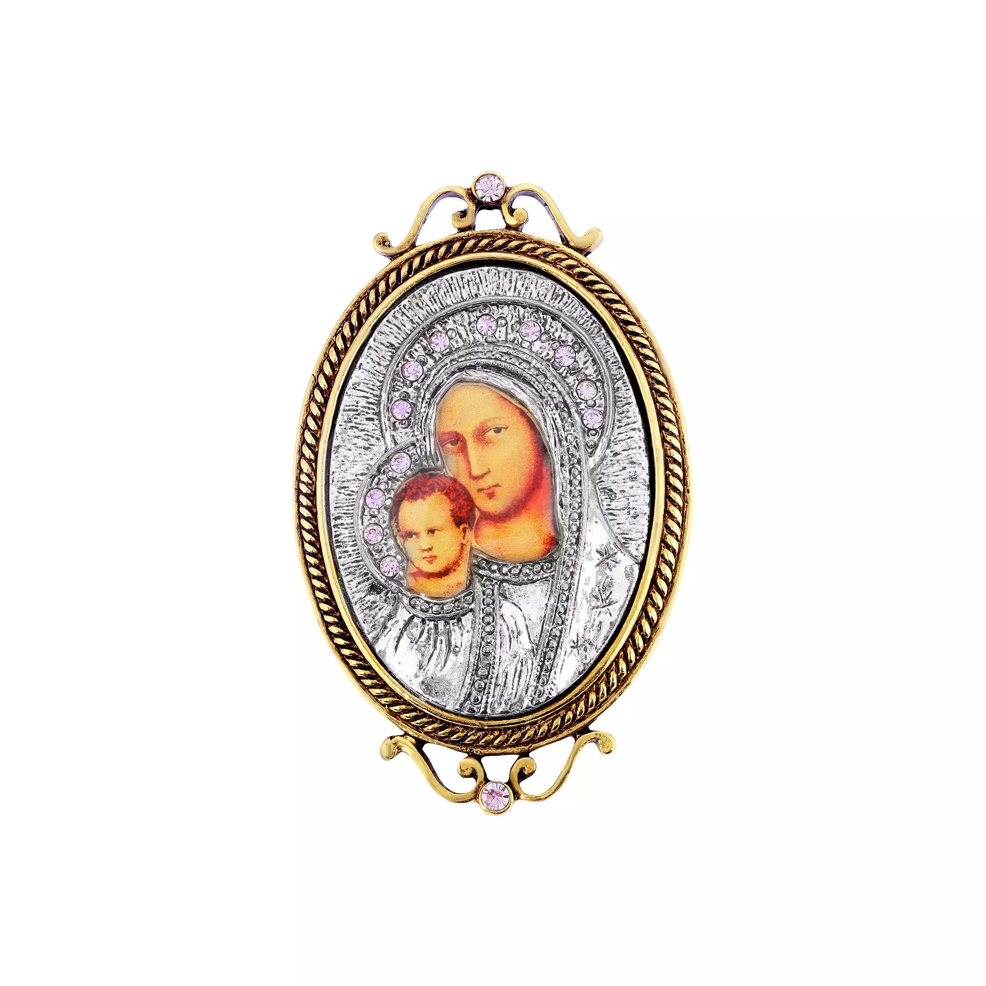 From the Iconica Collection, this two-toned Mary And Child brooch are based on a rosary box given as a gift to Pope John Paul II on his visit to St. Louis, Missouri in January 1999. | Symbols Of Faith 14K Gold-Dipped And Silver-Tone Purple Crystal Enamel Iconica Mary Brooch, Grey