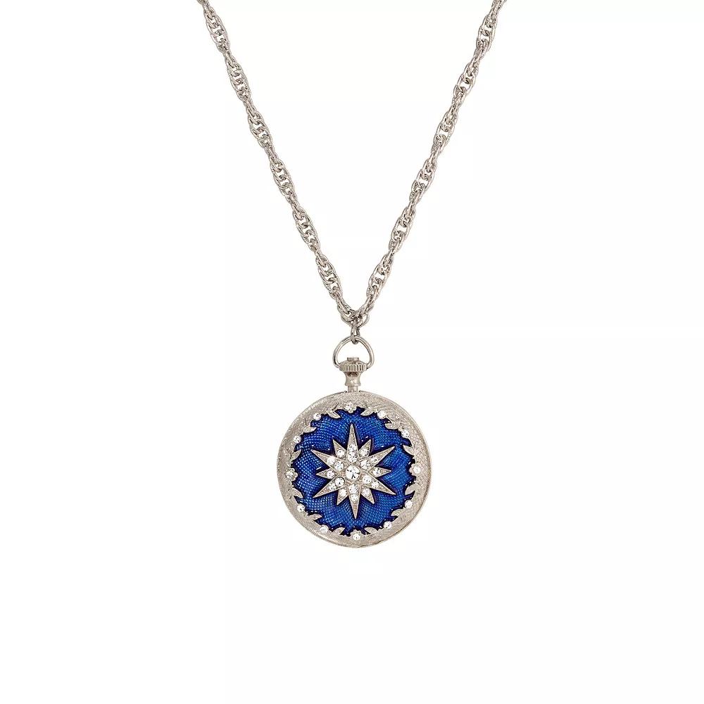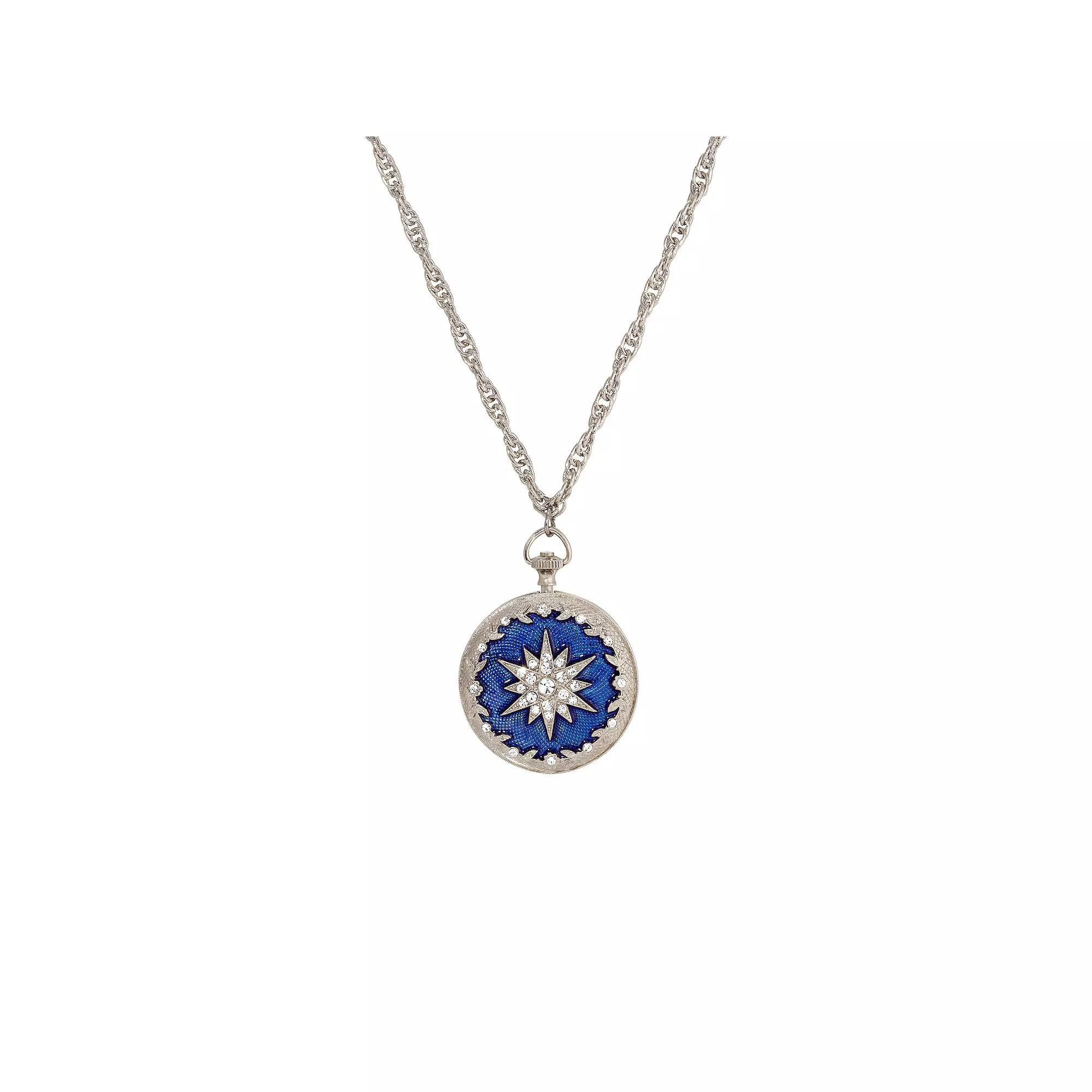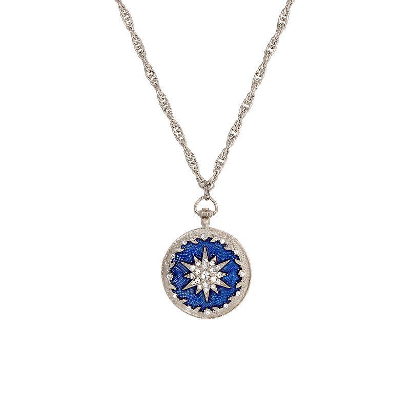 Symbols of Faith Enamel Crystal Star of Bethlehem Locket 28" Necklace, Women's, Blue
