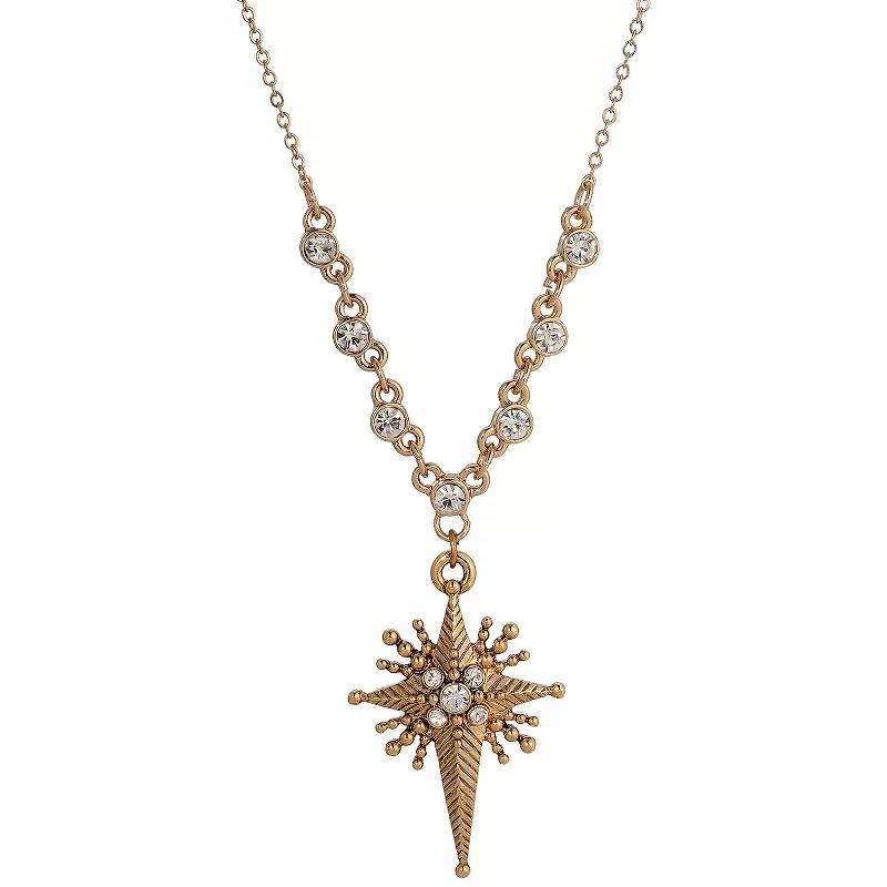 Display your spirituality with this lovely crystal-embellished gold tone Star of Bethlehem necklace from Symbols of Faith. Display your spirituality with this lovely crystal-embellished gold tone Star of Bethlehem necklace from Symbols of Faith. FEATURES Pendant length: 2 in. Chain length: 16 in. Clasp: lobster-claw Metal: alloy Plating: gold tone Finish: polished Material: crystal Nickel safe Not appropriate for children 14 years old and younger. Size: One Size. Color: White. Gender: female. Age Group: adult.