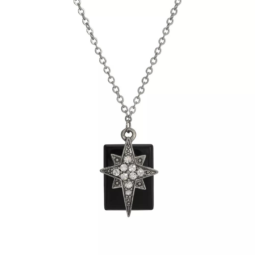 Finish off your outfit with this Symbols of Faith onyx star of bethlehem crystal pendant necklace. Click on this JEWELRY & WATCHES GUIDE to learn about fit, styles, materials and more! Finish off your outfit with this Symbols of Faith onyx star of bethlehem crystal pendant necklace. Click on this JEWELRY & WATCHES GUIDE to learn about fit, styles, materials and more! FEATURES 1.2L X .7W Chain length: 16 in. Clasp: lobster-claw Nickel free Metal: alloy Material: crystal Plating: silver tone Finish: antiqued All or virtually all Made in USA pursuant to Kohls Made in USA Substantiation Form Size: One Size. Color: Black. Gender: female. Age Group: adult.