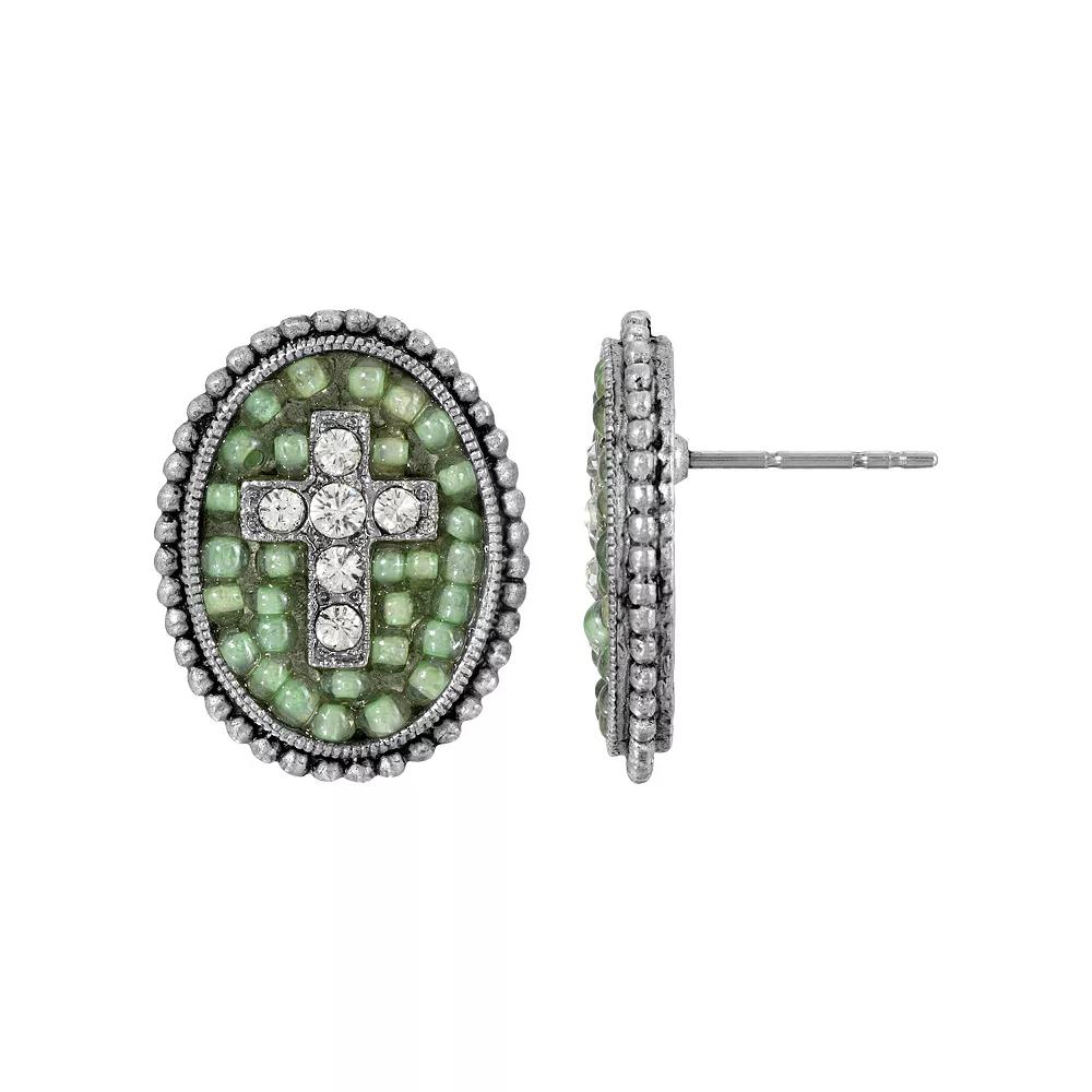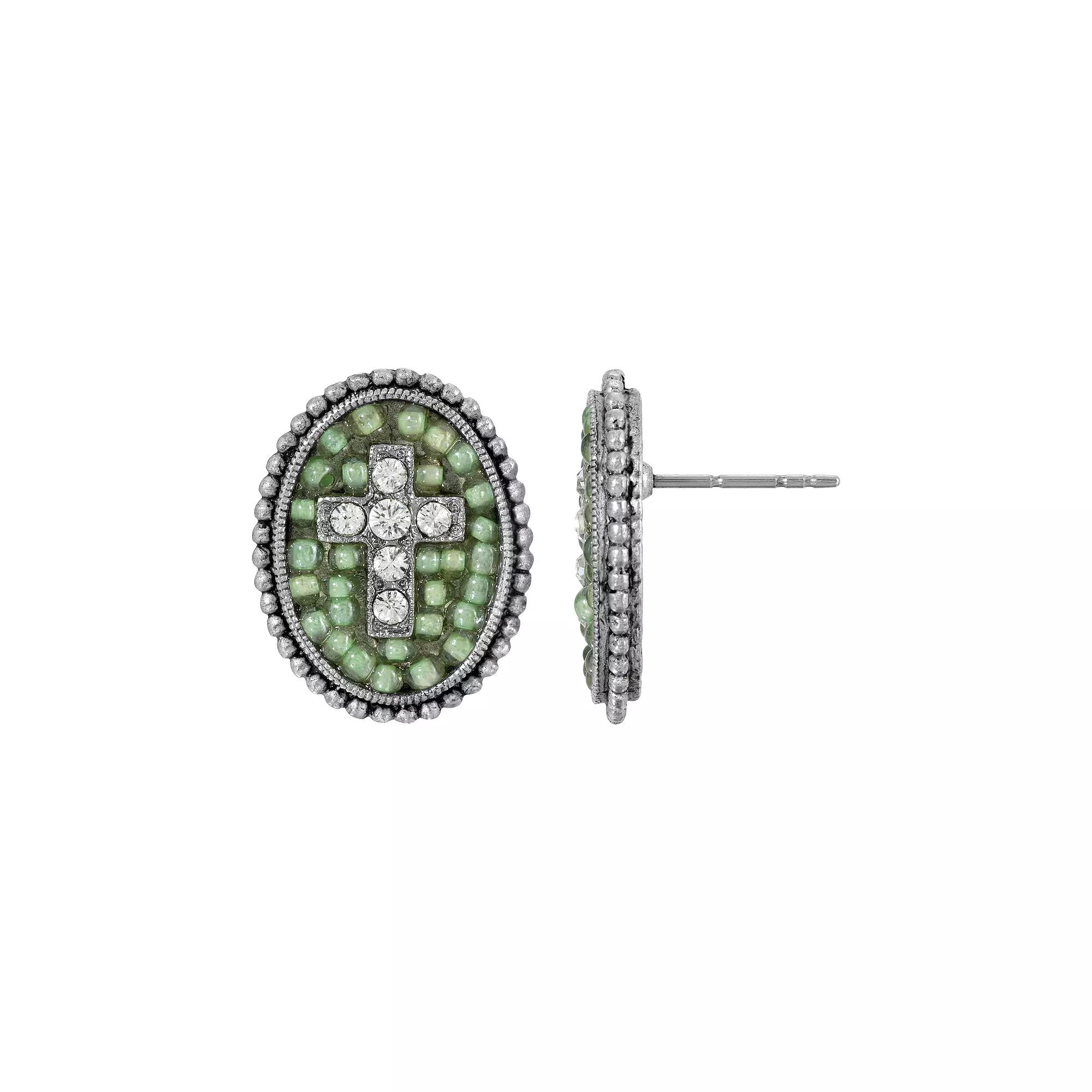 These Symbols of Faith cross oval earrings are a beautiful way to express your faith. These Symbols of Faith cross oval earrings are a beautiful way to express your faith. EARRING DETAILS Length: .75 in. Backings: post Plating: silver tone Finish: polished Material: alloy Material: simulated crystal, glass Not appropriate for children 14 years old and younger. Size: One Size. Color: Turq/Aqua. Gender: female. Age Group: adult.