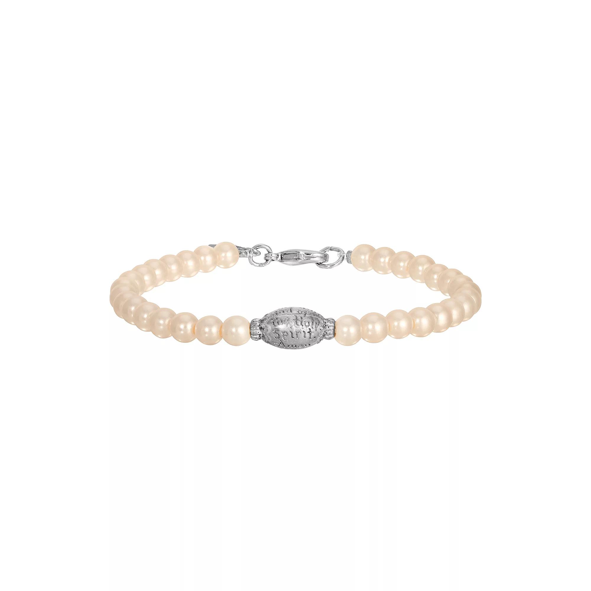Symbols of Faith Silver Tone Simulated Pearl Prayer Bracelet, Women's, White Product Image