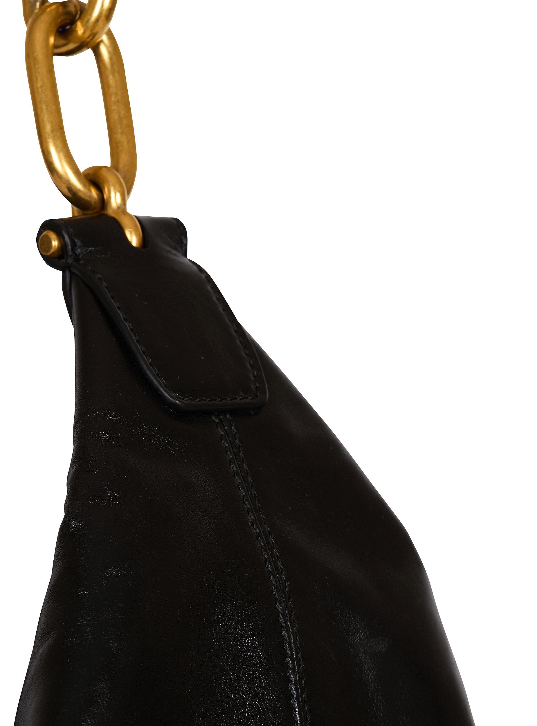 Sync Hobo bag in calfskin leatherSoft leatherCarry in the hand or wear on the shoulderChain handleLeather tab with PB-engraved metal lockGolden Balmain Paris logo embossed on the frontMagnetic fasteningInside patch pocketEmbossed leather inside card pocketCanvas liningGold hardwareDimensions: 11 x 32 x 25 cmMain material: 100% calfskinMade in ItalyItem: FN1BT003LBFO