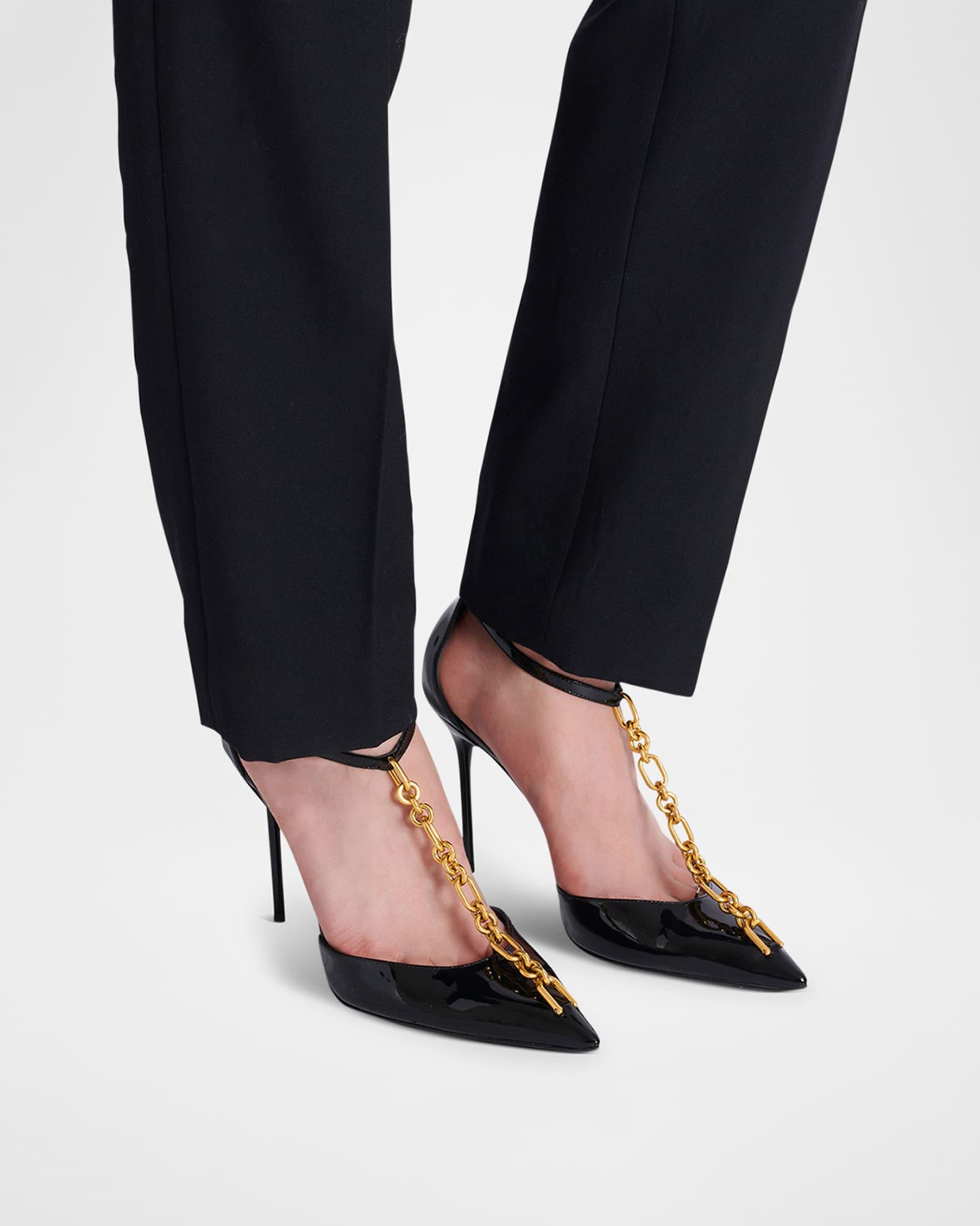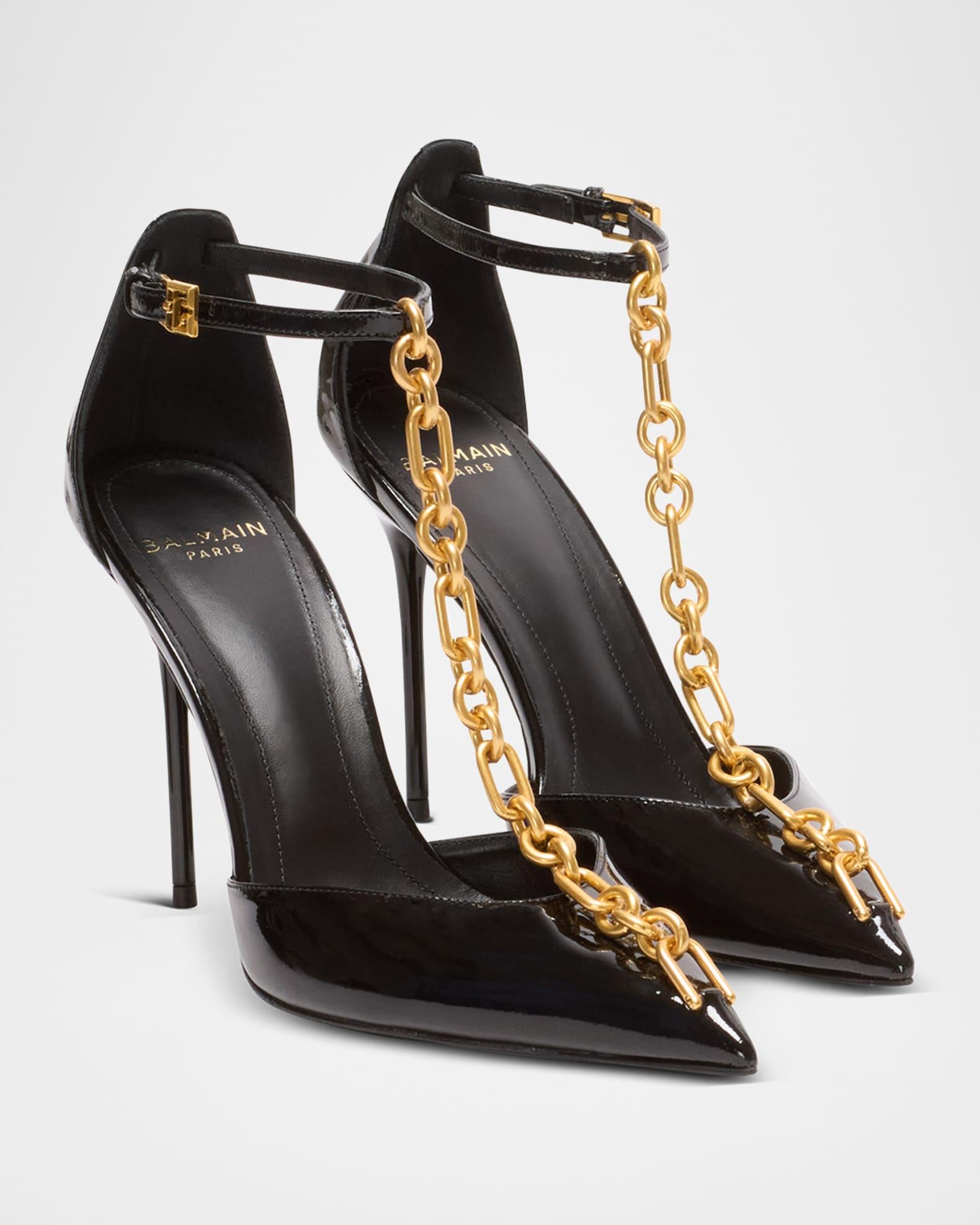 Sync Patent Leather Chain T-Strap Pumps