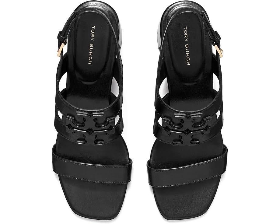Walk for the world wearing the comfy Tory Burch® 55 mm Ines Mid Heel Sandals. Crafted from leather upper, lining, and insole, this pair of lightweight sandals features open square toe, block heels, strap detailing on the upper with brand logo, and buckled closure.