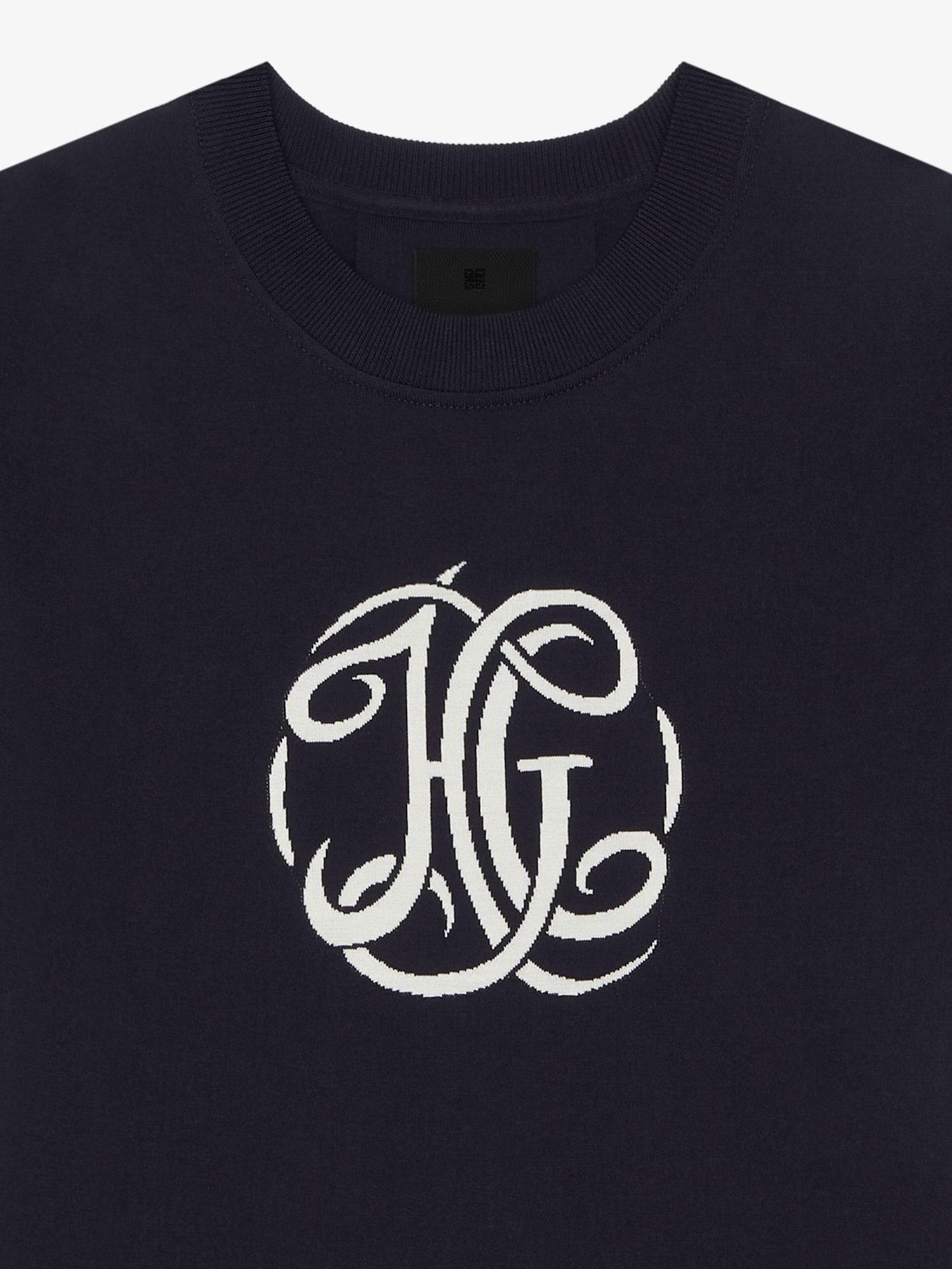 The initials of Hubert de Givenchy, originally used on the furniture of his countryside home, are reimagined in refined embroidery. Short-sleeved t-shirt in cotton knit. Crew neck. HG initials jacquard on the chest. Classic fit. Model measures 6.1 Feet and wears a size M.