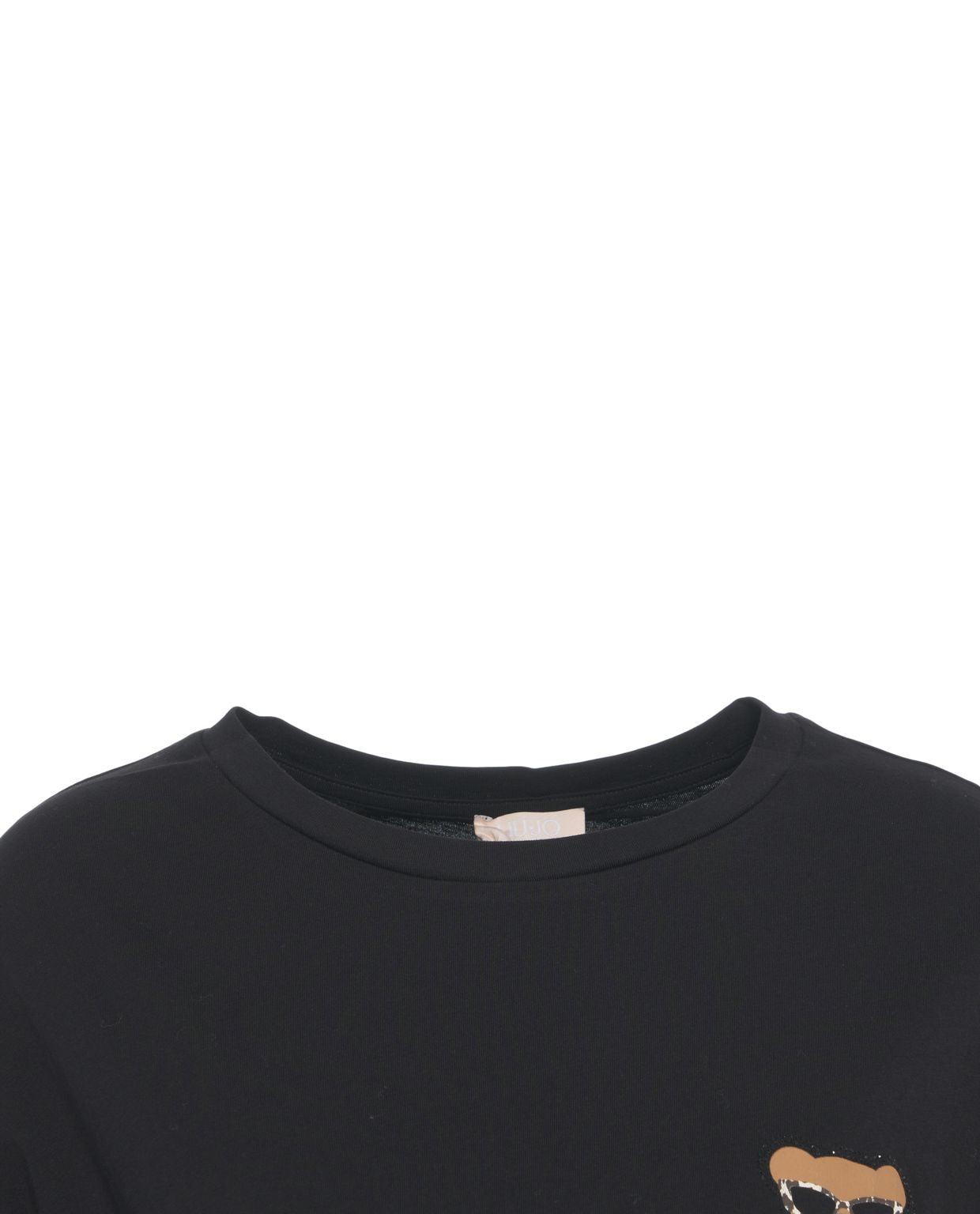 This Liu Jo White T-shirt features short sleeves and a classic round neckline. It is characterized by its comfortable loose fit, which creates a relaxed silhouette. A distinctive teddy bear print on the chest adds a playful touch to the design. Ideal for casual and stylish outfits.PrintPrintedRound neckShort sleevesLoose fitLiu Jo White