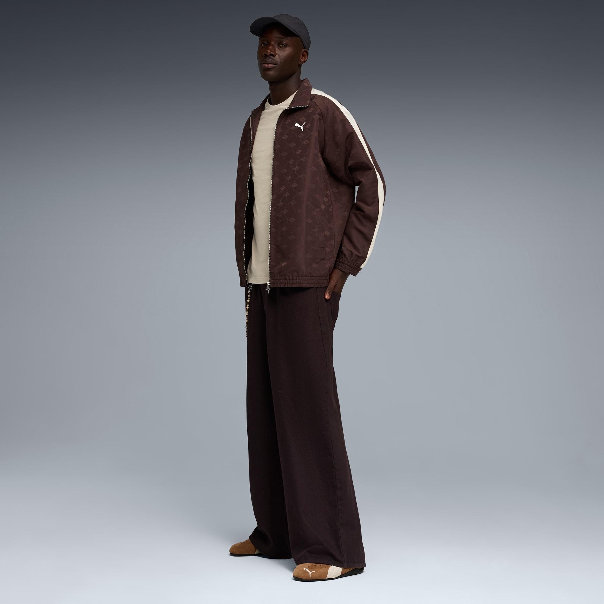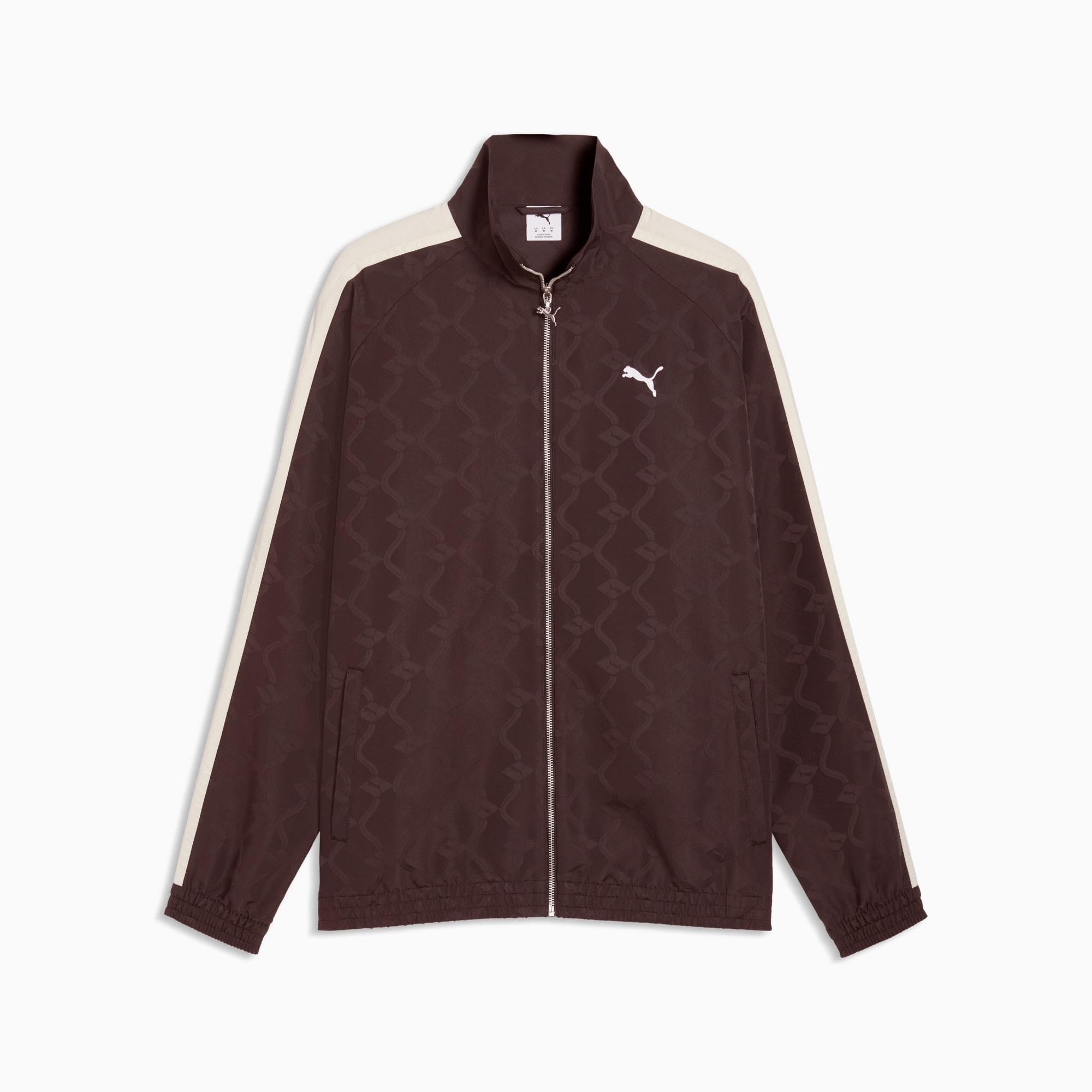 descriptionThe T7 tracksuit made its debut in 1968 and has been changing the game ever since. With its signature side panels, clean cutlines, and unmistakable PUMA DNA, the T7 has achieved icon status. This season we’ve amplified the classic with a bold colour palette, a range of relaxed and cropped fits, and an oversized PUMA Cat Logo for extra attitude. An easy fit and an embroidered CAT Logo give this track jacket standout style.Style: 634398_31Color: Chocolate Brownmeasure & sizeModel informationModel is 6' 2" tall and is wearing size M.features & benefitsMade with 100% recycled material excluding trims & decorations.detailsFit: RelaxedMain material type: Jacquard weaveNeck: Stand up collarLong sleevesFastener: Full zipLength: Standard jacketPockets: Welt pocket, side pocketmaterials & careMaterial informationInserts: 100% polyesterUpper Pocket Bag: 100% polyesterShell: 100% polyesterLower Pocket Bag: 100% polyesterCare instructionsWash garment in a washing bagWash and iron inside outDo not iron accessories/trimsClose all fasteningsUse only mild detergentExclusive of DecorationWash separately