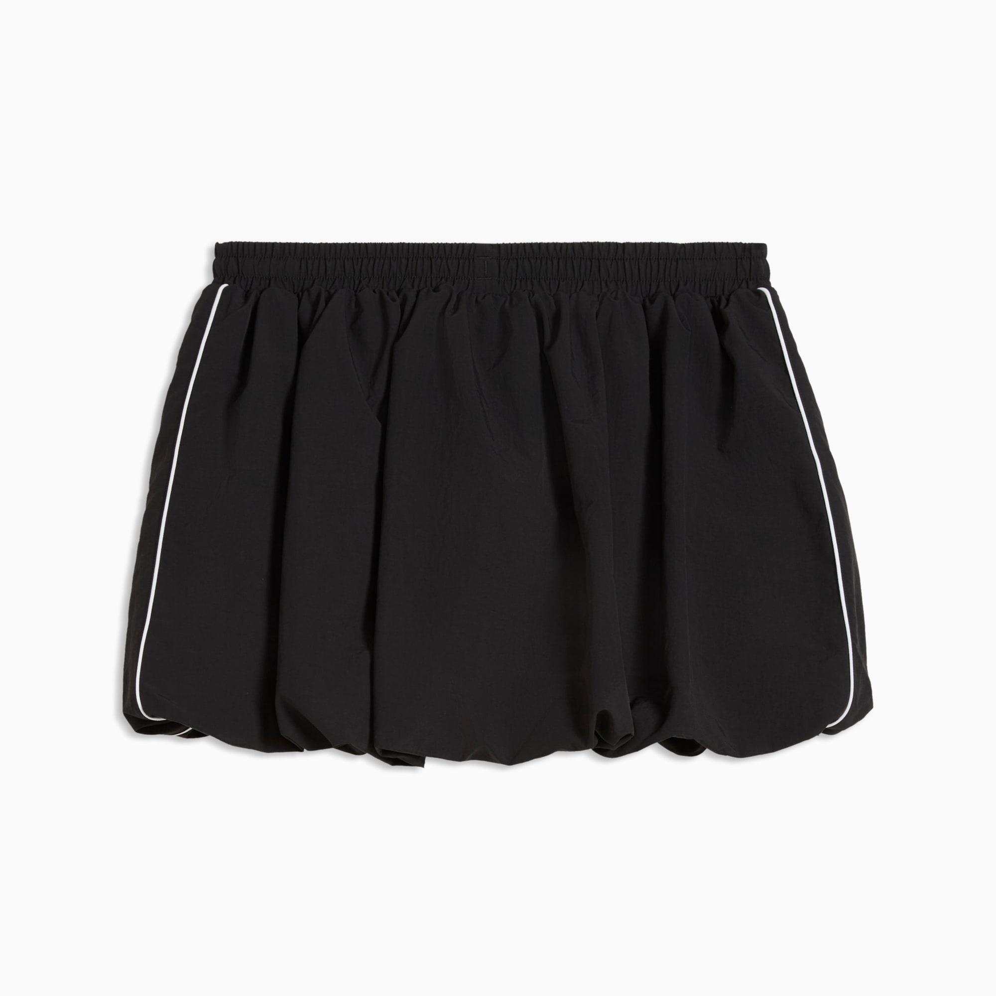descriptionThe T7 tracksuit made its debut in 1968 and has been changing the game ever since. With its signature side panels, clean cutlines, and unmistakable PUMA DNA, the T7 has achieved icon status. This season we've amplified the classic with a bold colour palette, a range of relaxed and cropped fits, and an oversized PUMA Cat Logo for extra attitude. This skirt has a voluminous silhouette for an on-trend look.Style: 635461_01Color: PUMA Blackmeasure & sizeModel informationModel is 5' 9" tall and is wearing size S.features & benefitsMade with 100% recycled material excluding trims & decorations.detailsFit: RelaxedMain material type: Plain weaveElasticised waist with drawstringLength: ShortRise: Mediummaterials & careMaterial informationLining: 100% polyesterShell: 100% nylonCare instructionsWash garment in a washing bagWash separatelyExclusive of DecorationWash garment inside outUse only mild detergent