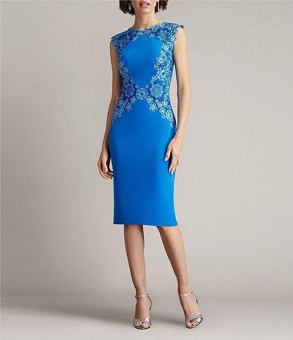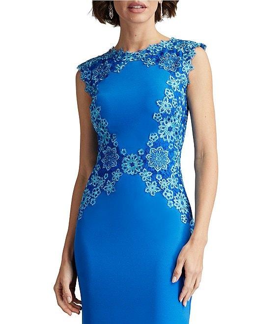 From Tadashi Shoji, this dress features: Floral embroidered crepe fabrication Boat neckline Sleeveless Back zip closure Approx. 39.75" length Polyester Dry clean Imported.
