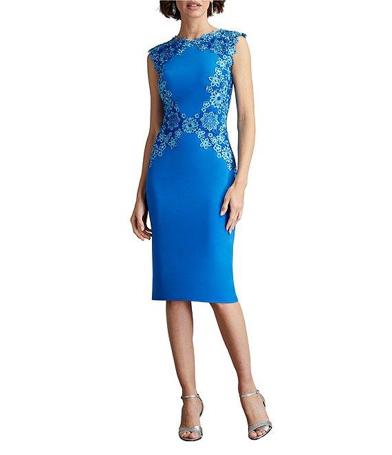 Tadashi Shoji Floral Embroidered Crepe Boat Neck Sleeveless Dress