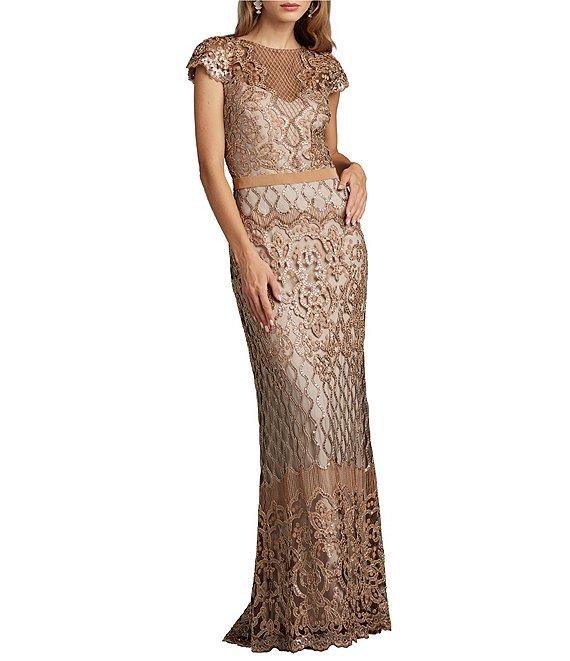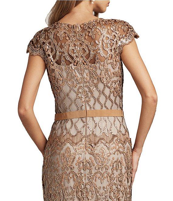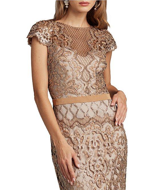 Tadashi Shoji Illusion Neck Cap Sleeve Sequin Lace Column Gown