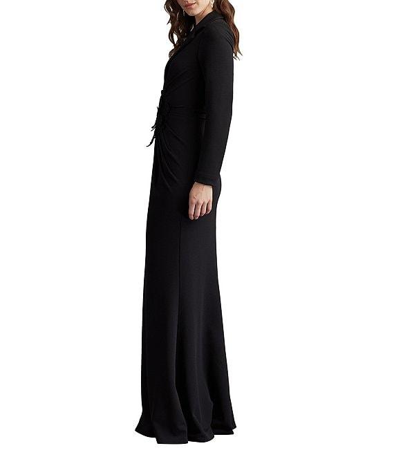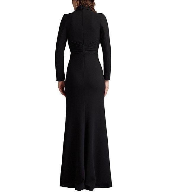 Tadashi Shoji V-Neck Long Sleeve Crepe Gown With Floral Applique
