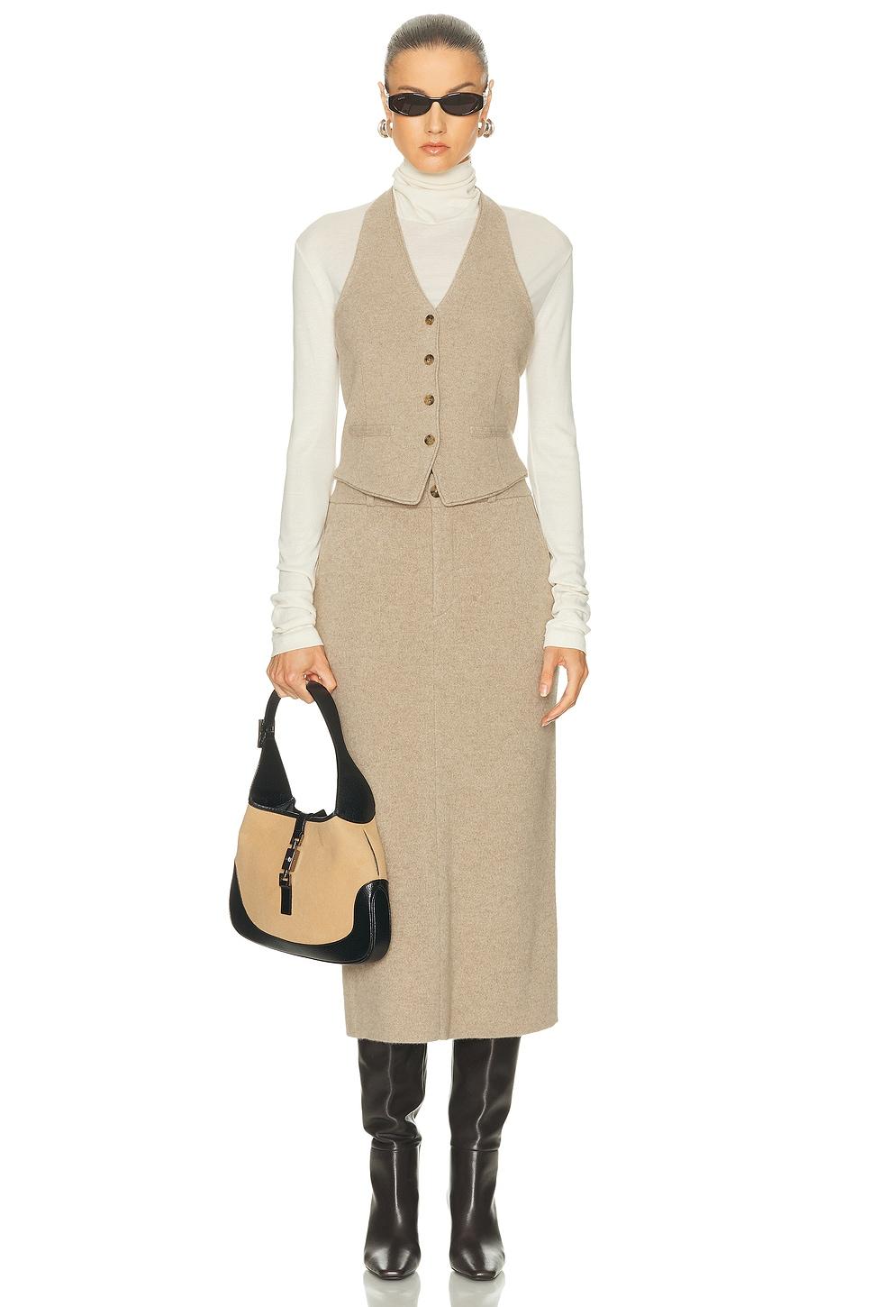 vest100% cashmere / Hand wash / Front button closure / Open back with adjustable back strap / Front lower faux seam pocket design / Midweight knit fabric / Item not sold as a set / Made in China / Our Style No. GUEF-WS79 / Manufacturer Style No. W30810IM / Model is wearing size S.