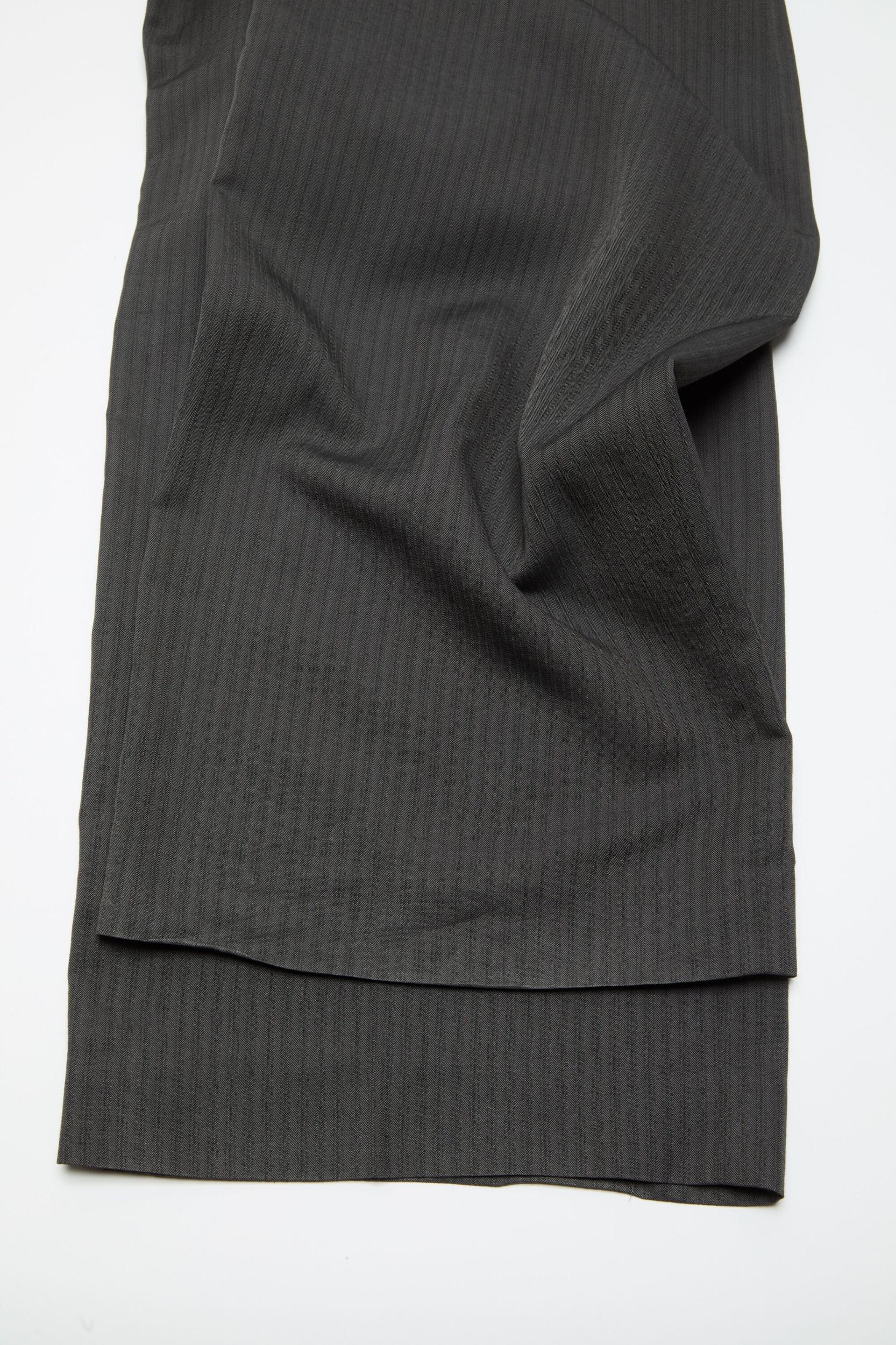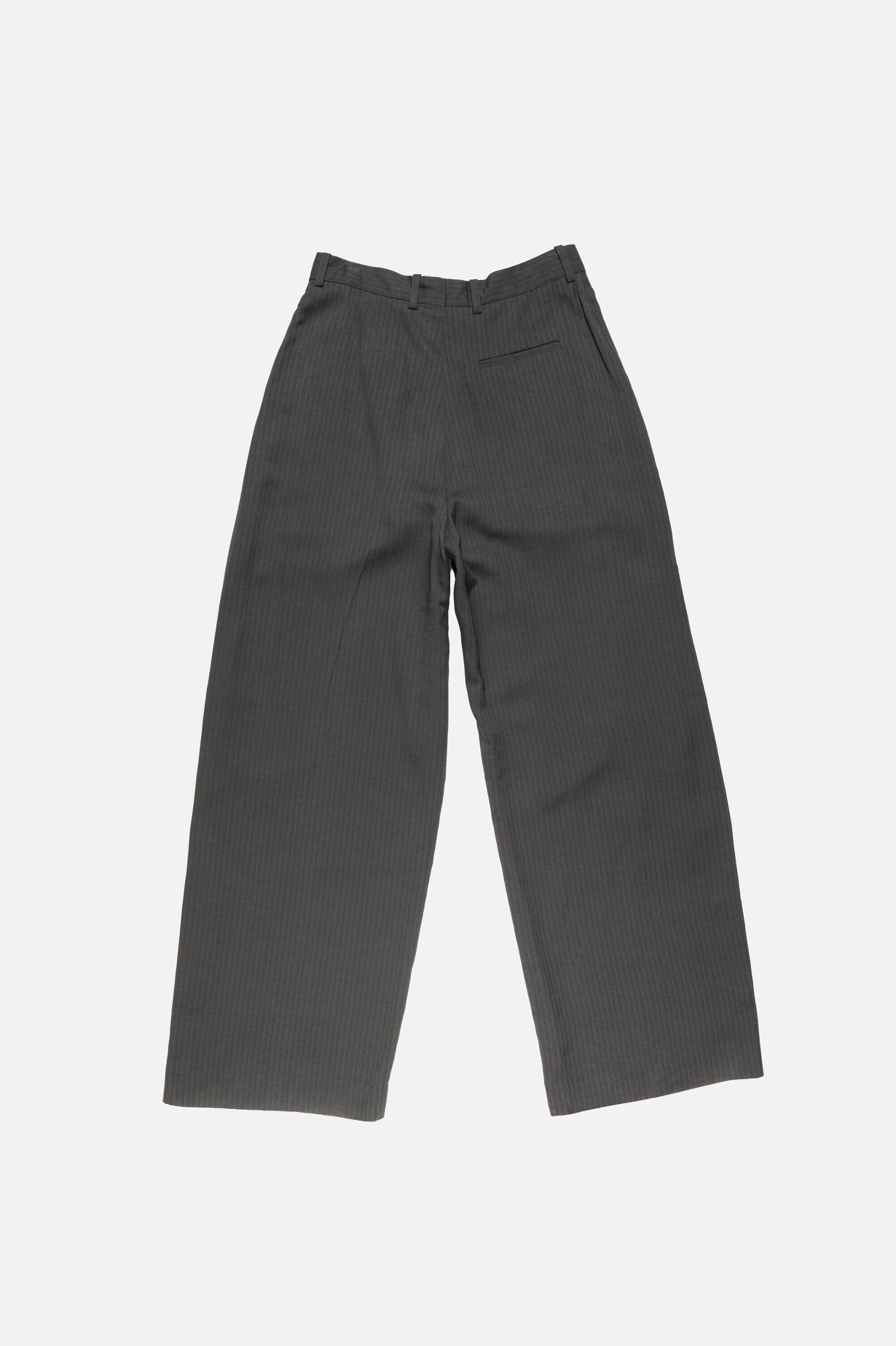 Trousers crafted from fluid tailoring fabric with a generous drape and herringbone structure. Designed with side pockets, a back welt pocket, belt loops, and completed with an invisible zip fly and hook-and-bar closure. Cut to a regular fit with a mid waist and long leg. FN-MN-TROU001192