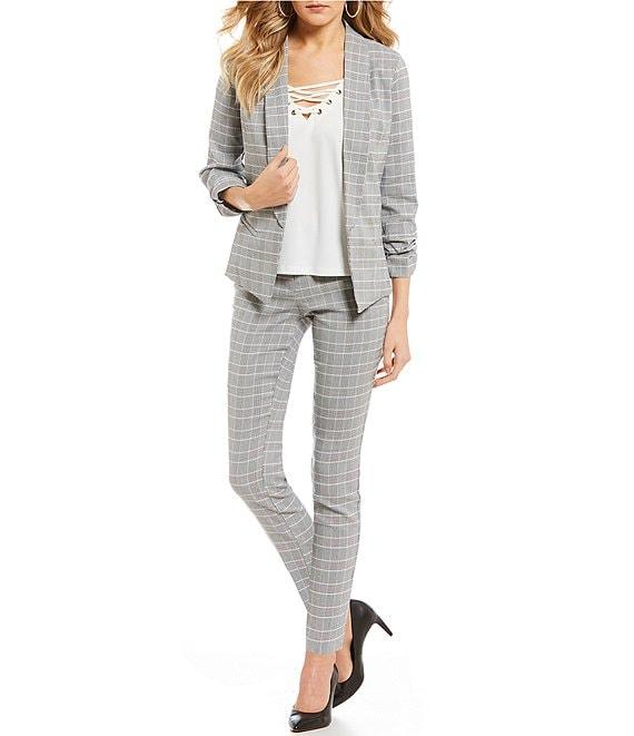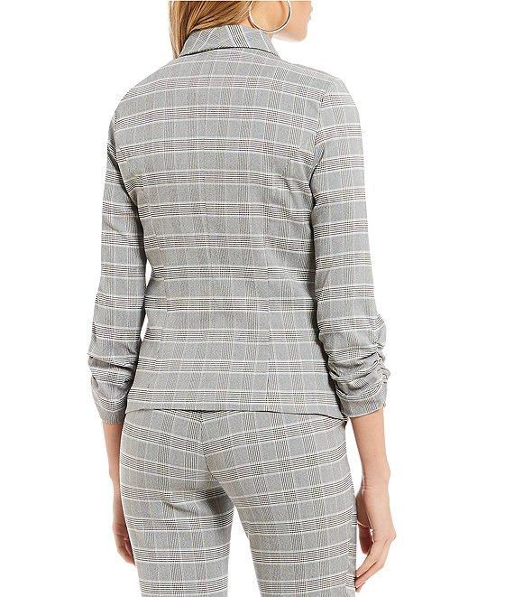 Takara Ruched-Sleeve Coordinating Menswear Suit Separates Plaid Blazer