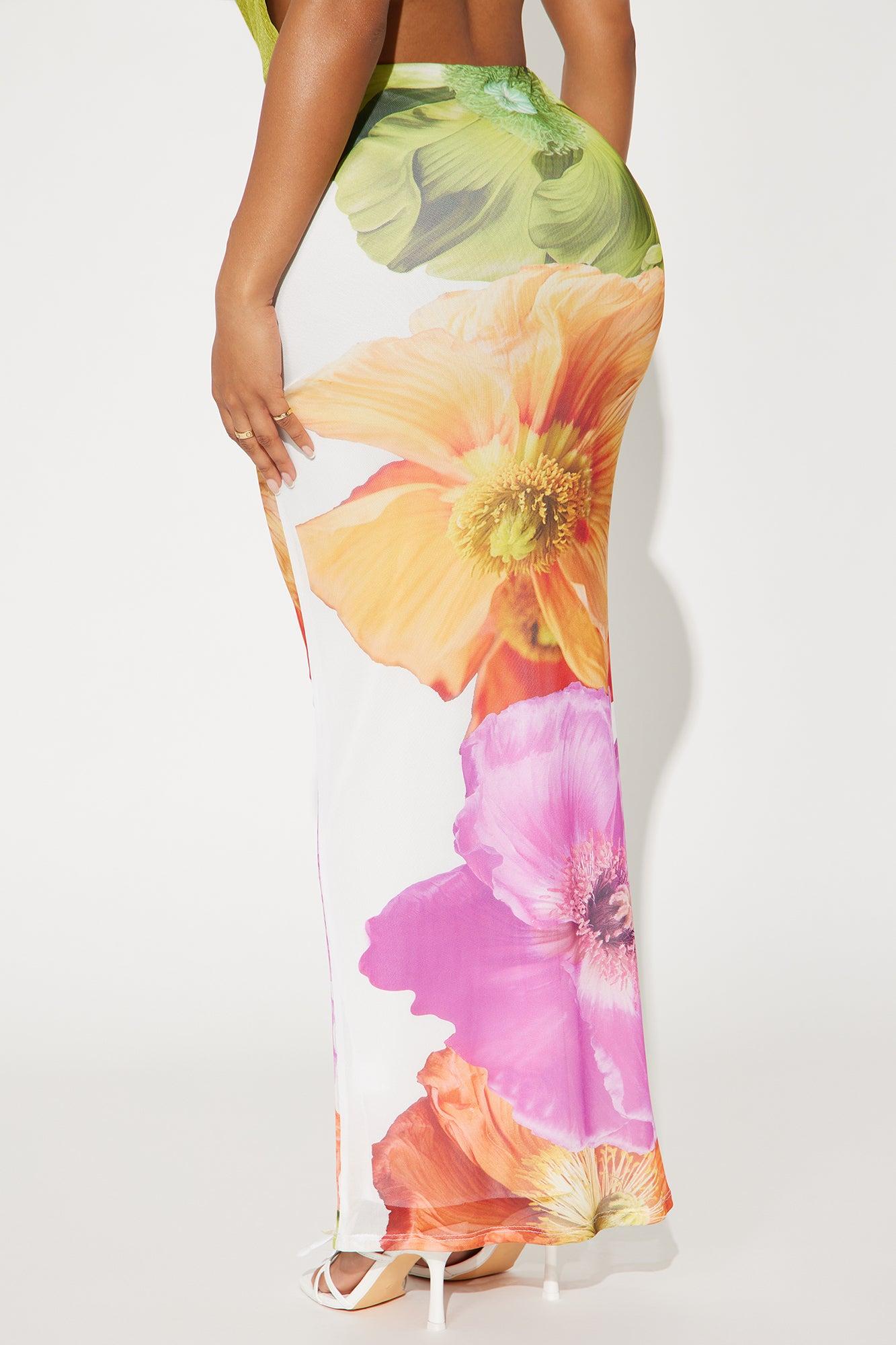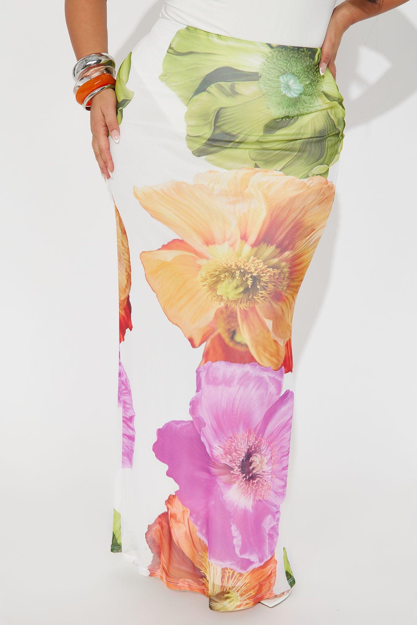 Available In Purple/combo And White/combo. Mesh Maxi Skirt High Rise Elastic Waistband Floral Print Fully Lined Stretch Disclaimer - Print Placement Will Vary Self: 95% Polyester 5% Spandex Lining: 100% Polyester Imported California Proposition 65WARNING: Cancer and Reproductive Harm - www.P65Warnings.ca.gov.