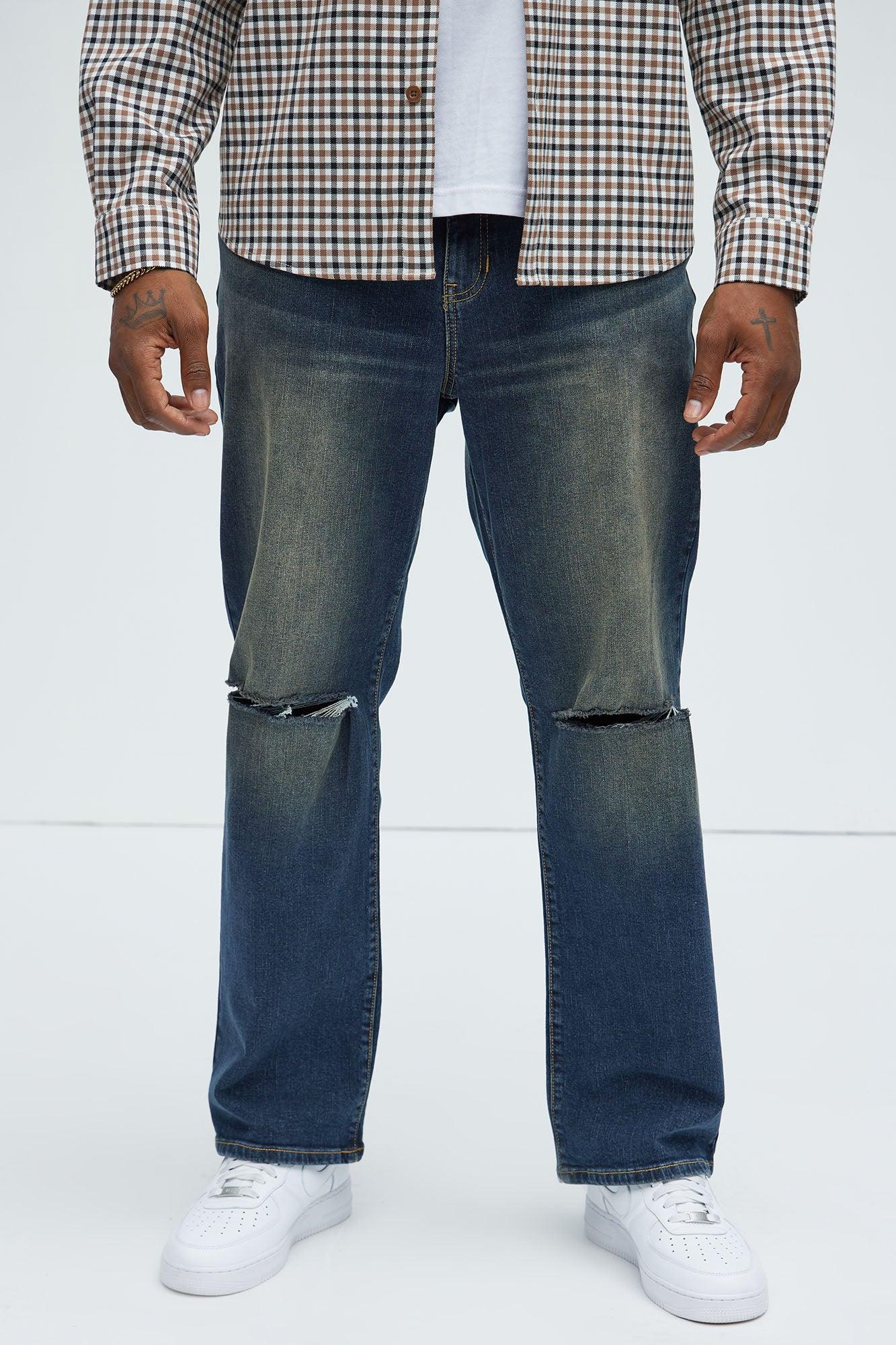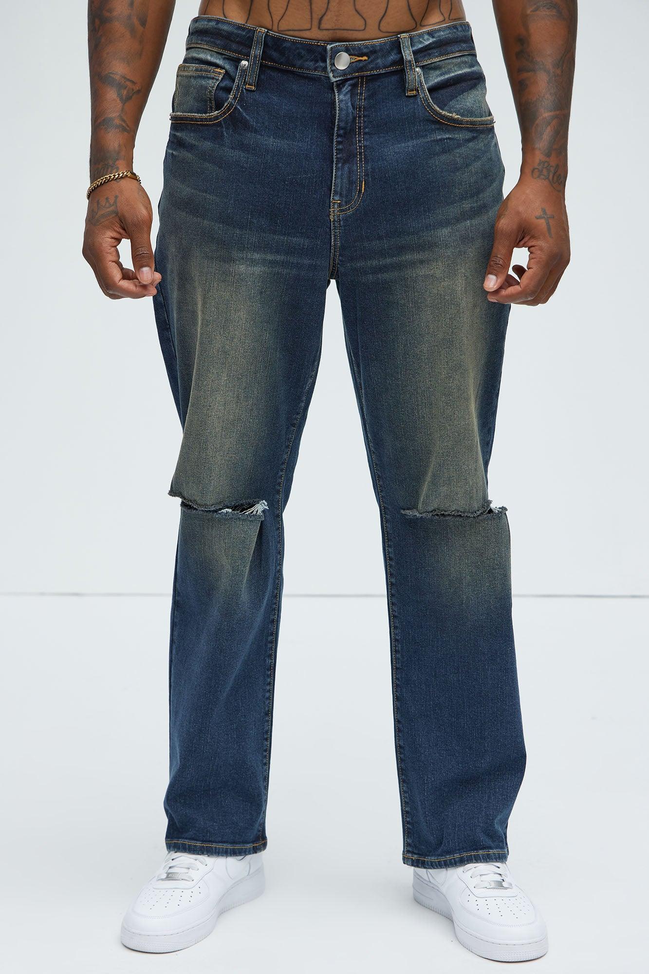 Available In Dark Wash. Straight Fit Zip Fly 98% Cotton, 2% Spandex Disclaimer: Due To The Specialized Distressing & Wash Process, Each Garment Is Unique. Button Closure 5 Pocket Detail Ripped Knee Detail Imported California Proposition 65 WARNING: Cancer and Reproductive Harm - www.P65Warnings.ca.gov.