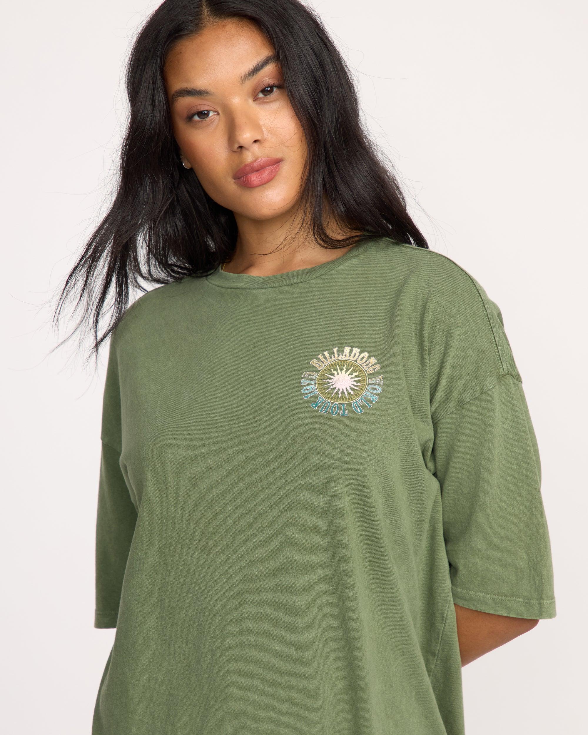 We found the Take A Tour T-Shirt on a desert highway, sun-faded and free. Slip it on: oversized true boy tee in loose-knit cotton, mineral wash, crew neck, finished with a vintage-style screen print. Features 100% Cotton loose knit jersey, Mineral wash True boy tee Oversized Crew neck Screen print