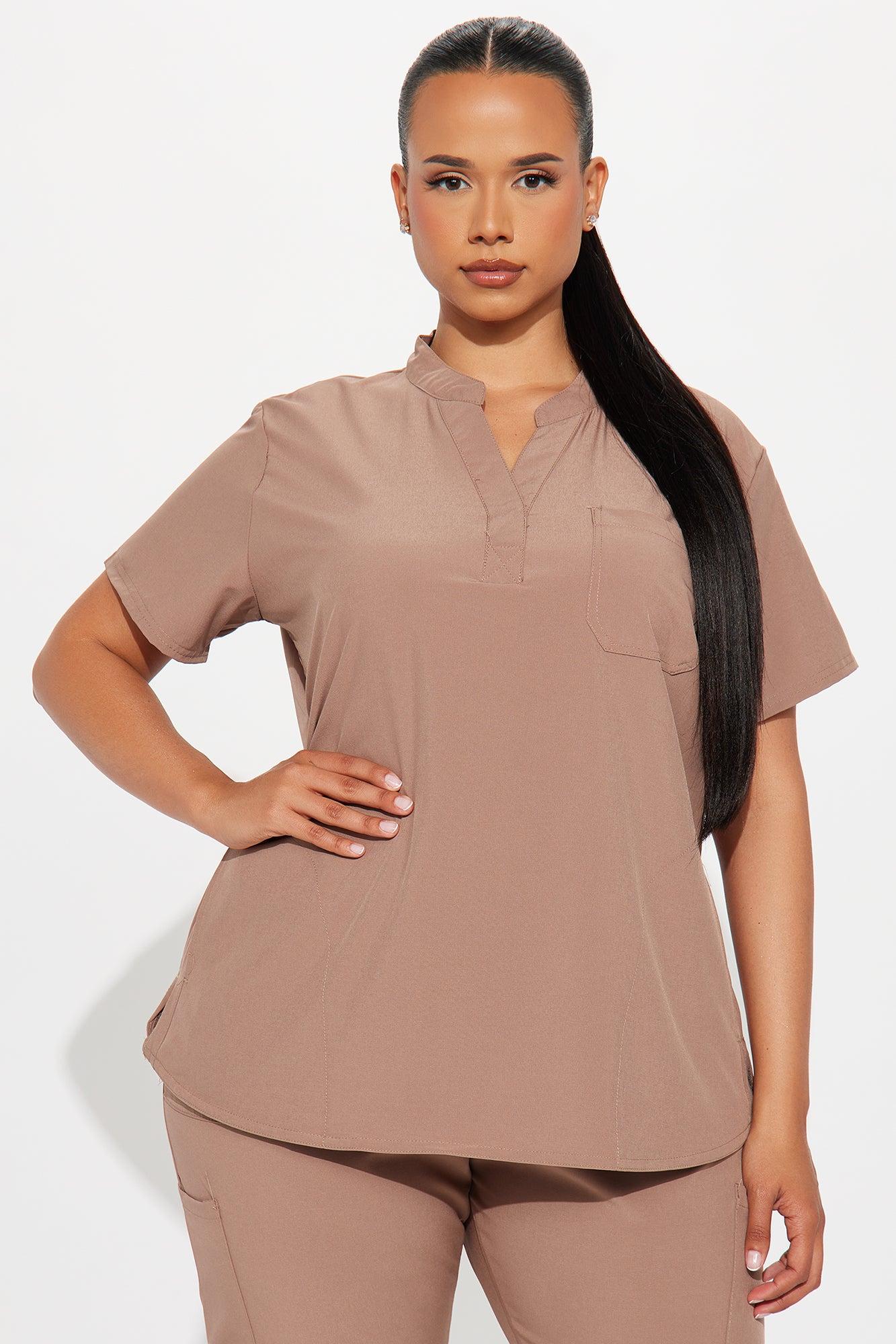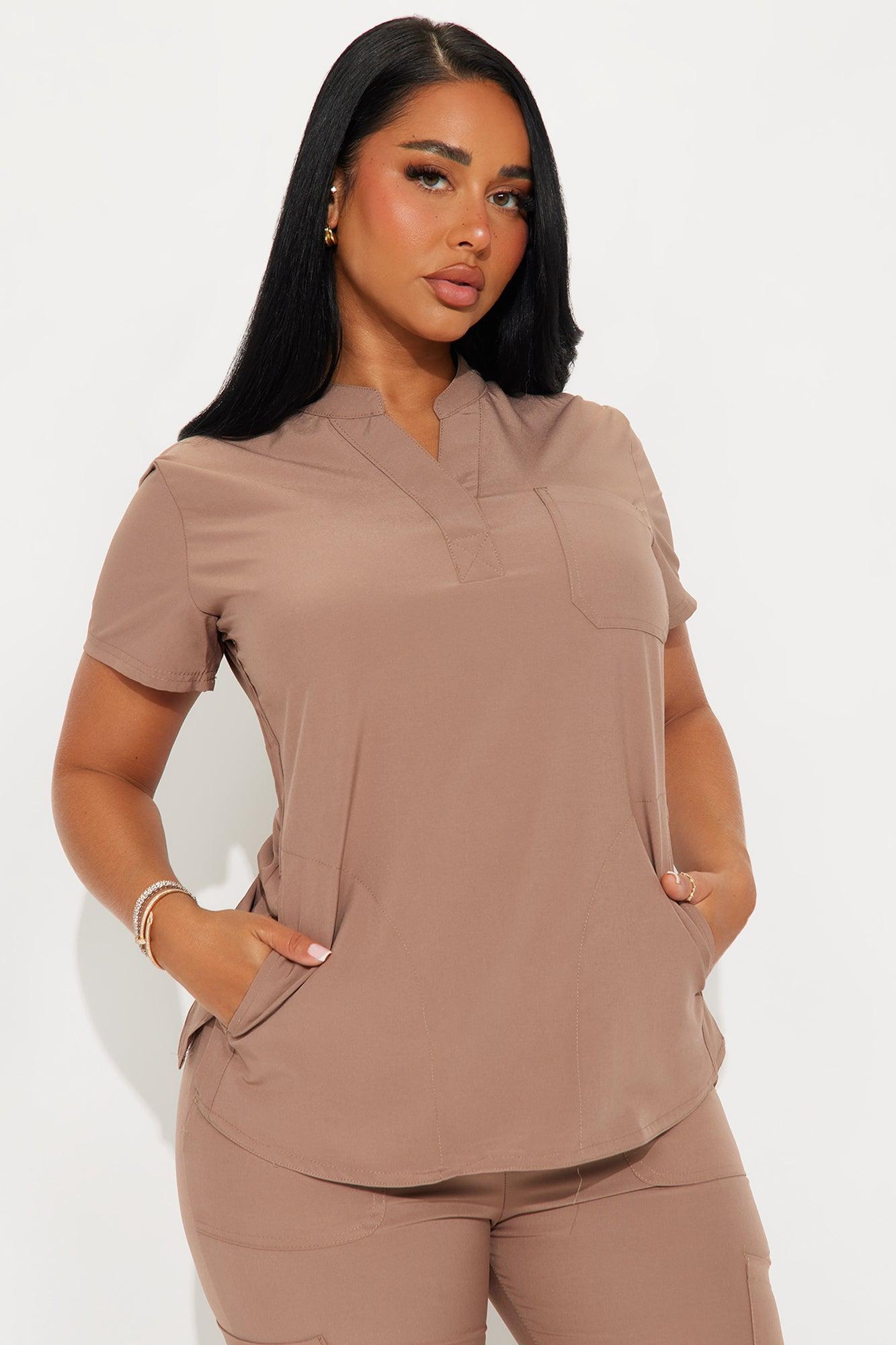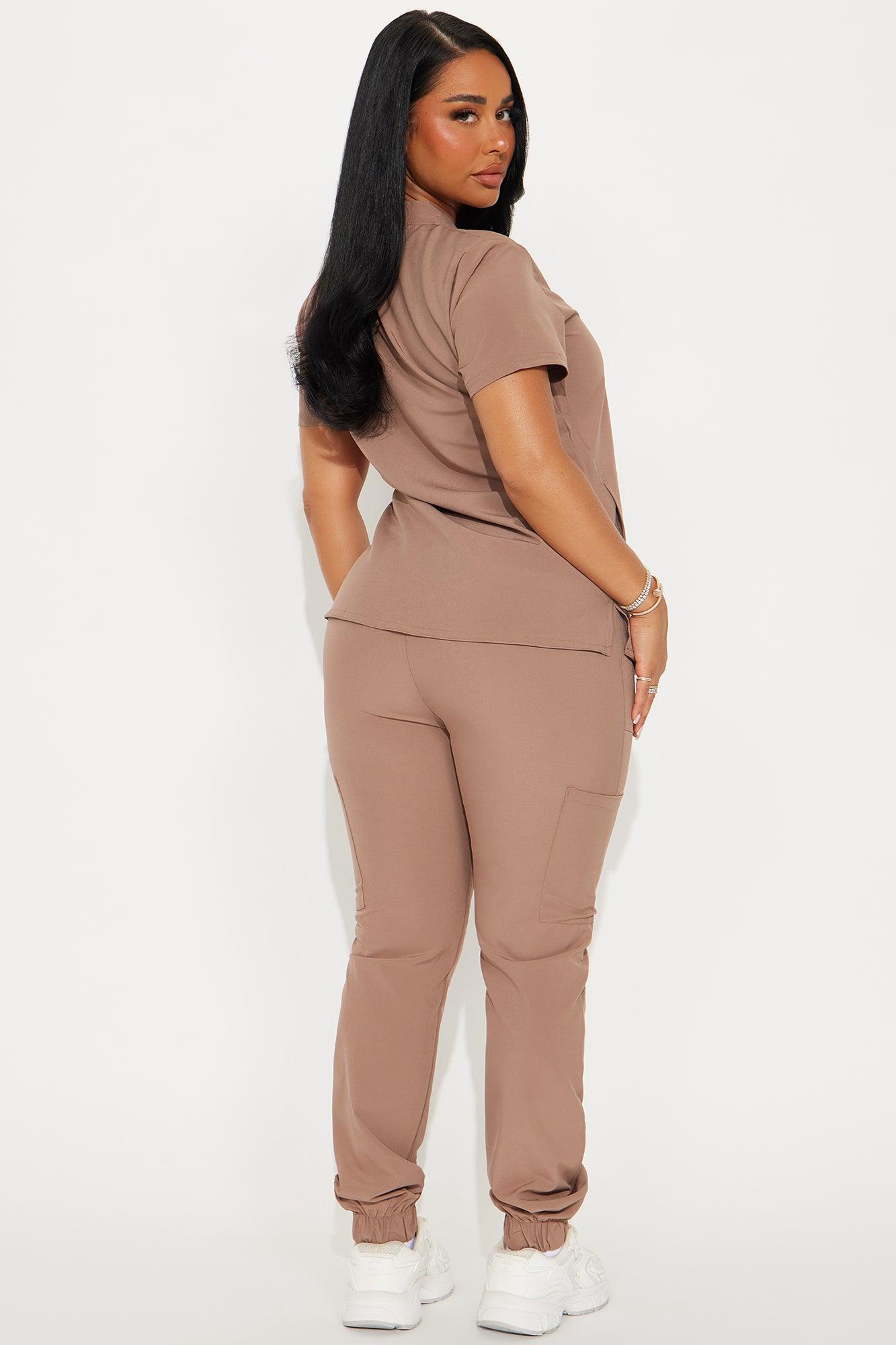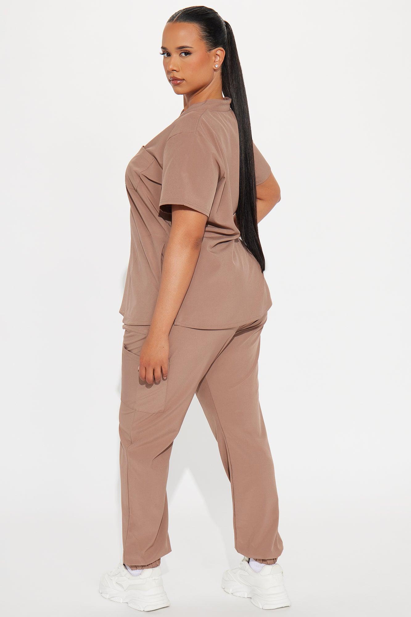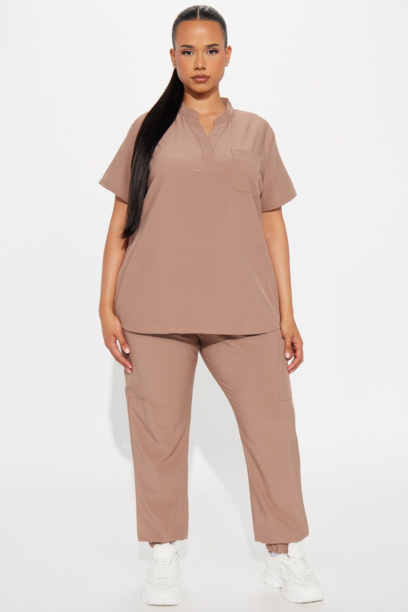 Available In Brown, Mauve, And Lime. Uniform Scrub Set Short Sleeve Top V Neck Pocket Detail Matching Joggers Drawstring Waistband Side Pockets Stretch 93% Polyester 7% Spandex Imported California Proposition 65WARNING: Cancer and Reproductive Harm - www.P65Warnings.ca.gov.