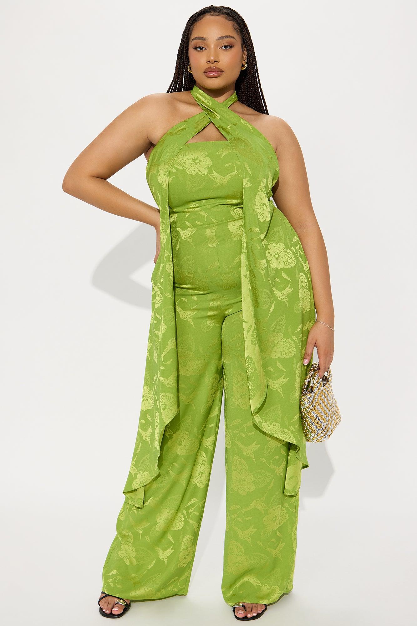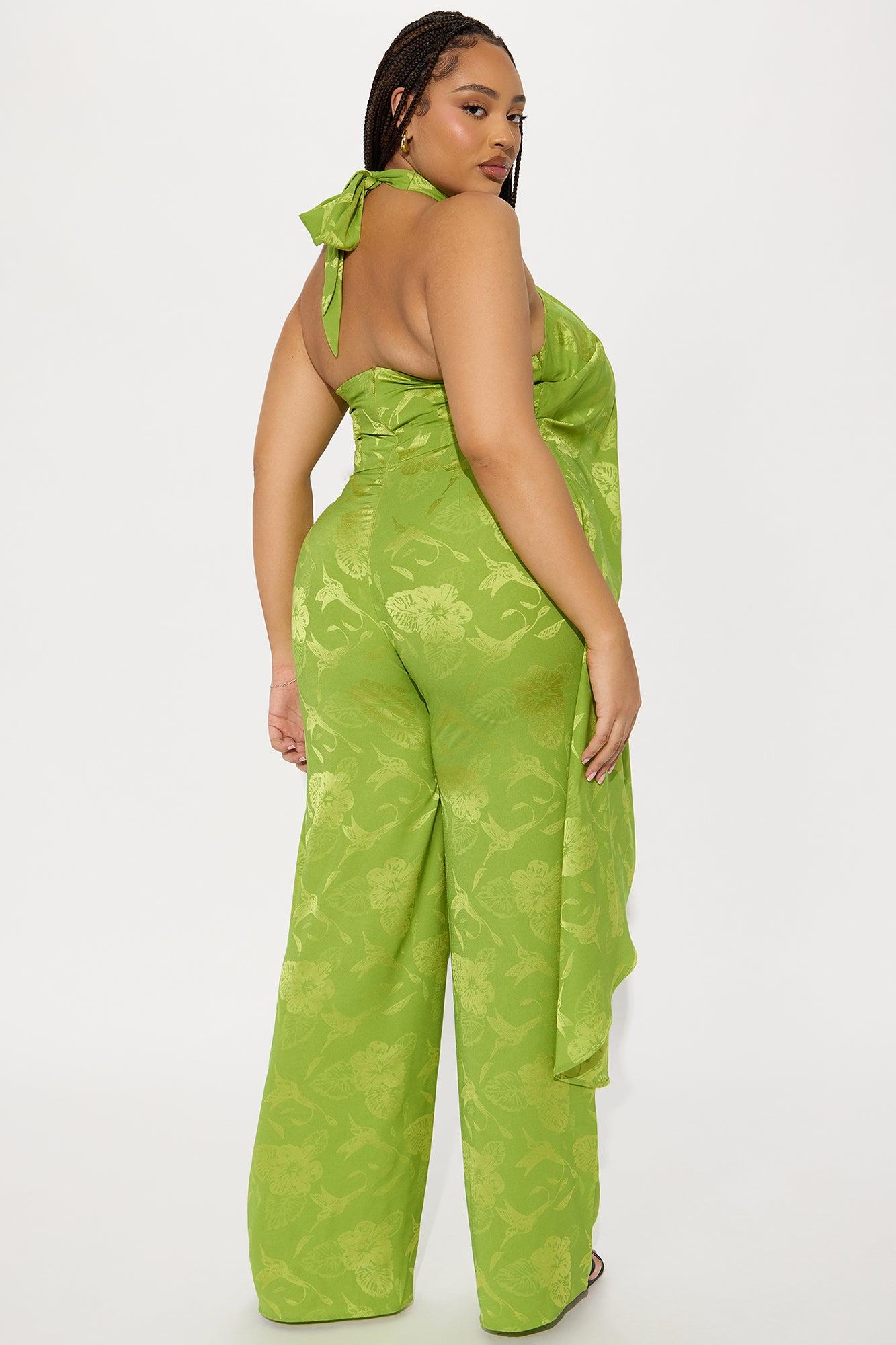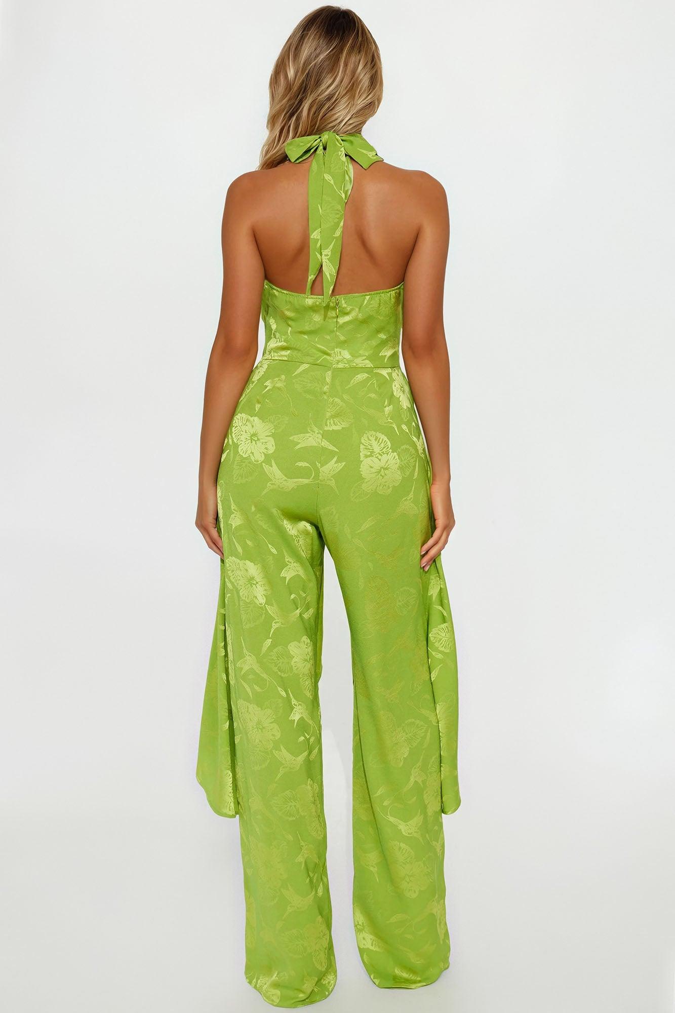 Take Me With You Satin Jumpsuit - Chartreuse Female