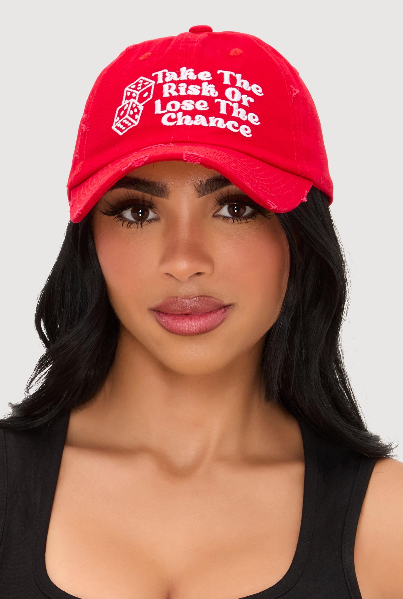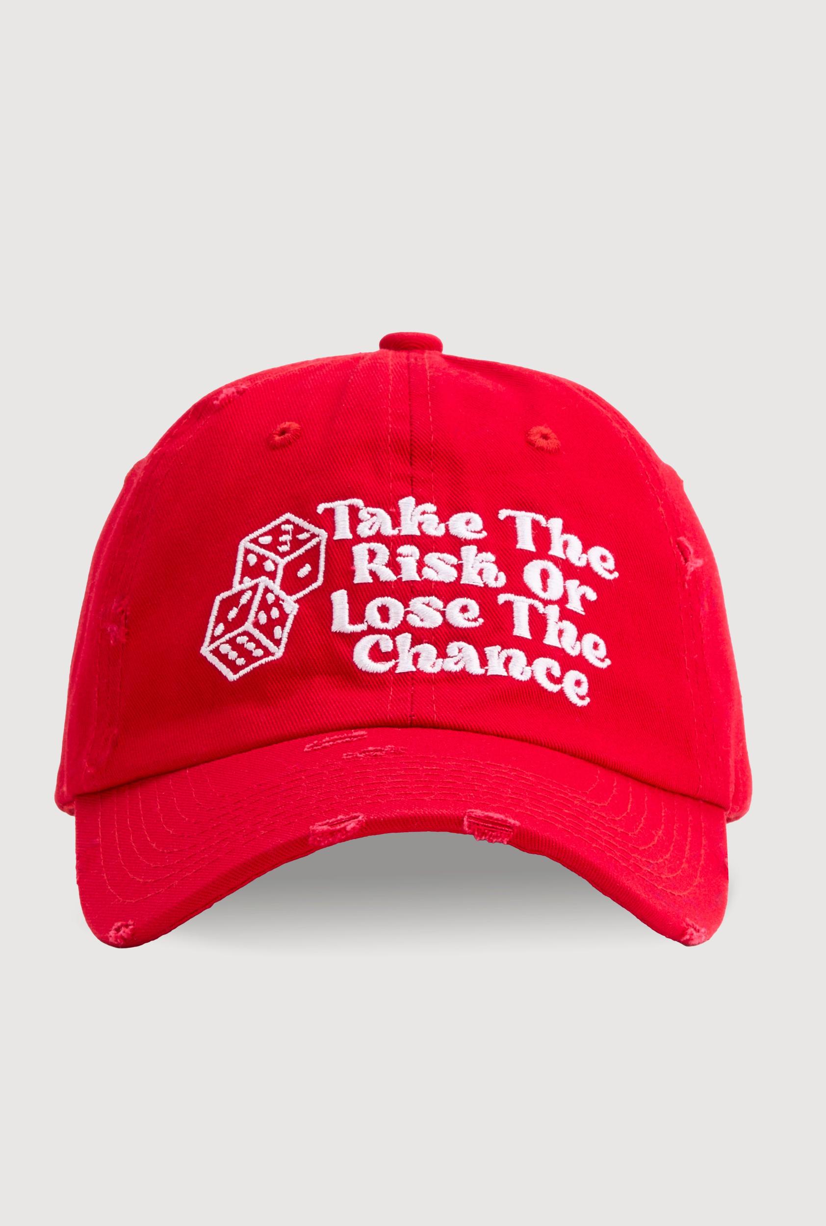 Details and Fit Adjustable Strap(s) Embroidery Frayed Graphic Print One Size Fits Most Graphic: Take The Risk Or Lose The Chance Measurements Circumference: 24 in Content and Care Material: 100% Cotton Care Instructions: Hand Wash Country Of Origin: China Rainbow Item Number 3129075473365