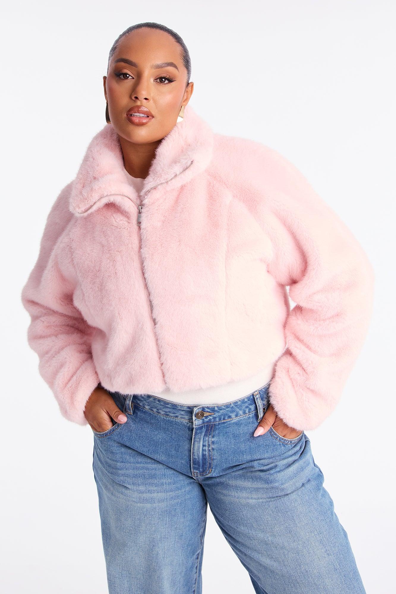 Taking Chances Cropped Faux Fur Coat - Pink Female