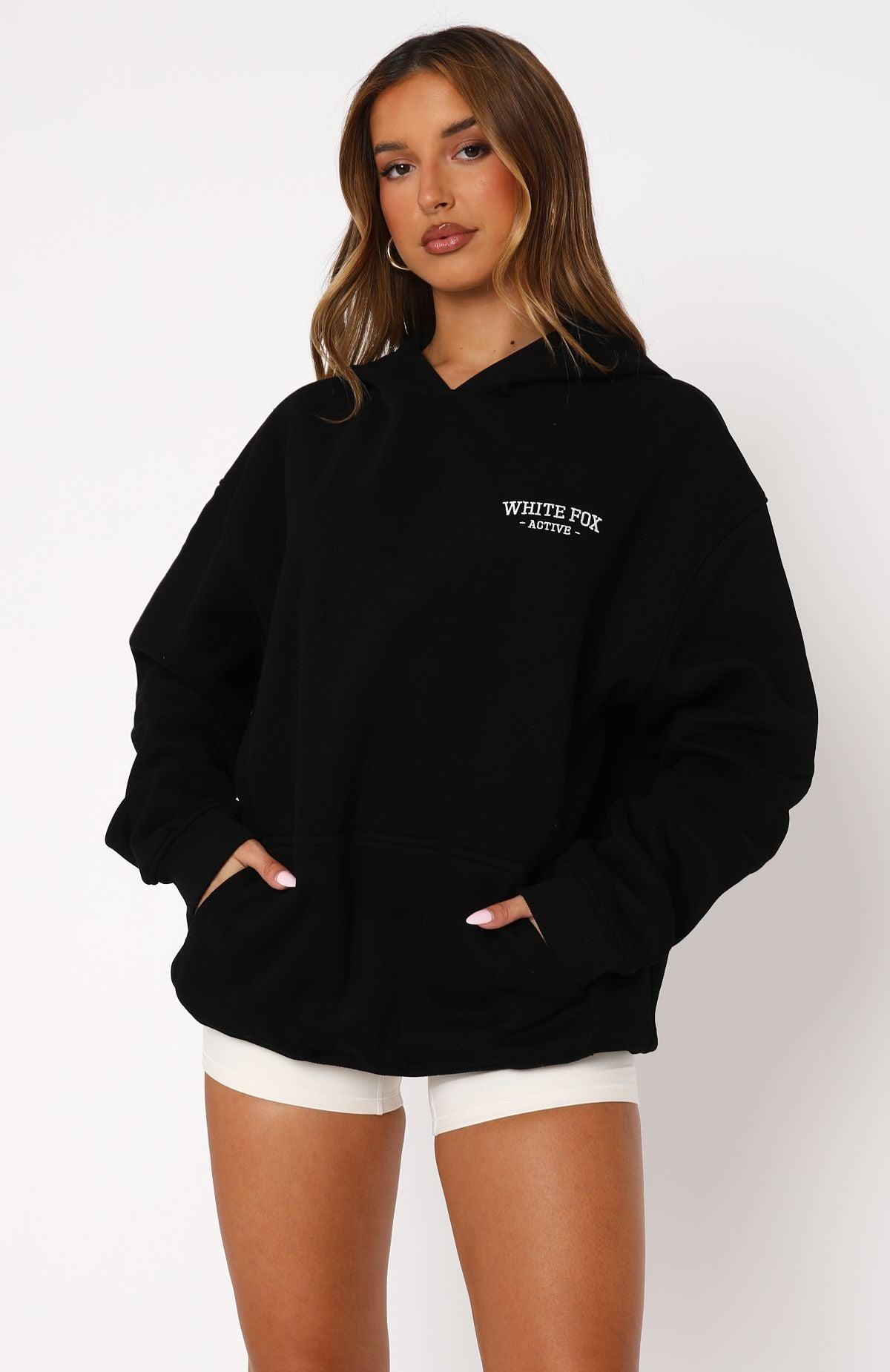 WHITE FOX ACTIVE Elevate your comfort game with the Taking Sides Oversized Hoodie Black. Features an oversized fit, elasticated ribbed cuffs & hem, front pocket, hood, soft fleeced fabric for extra comfort and print logo side front and centre back. Pair with your favourite WFA bike shorts for the cutest brunch fit'! 51% Cotton 49% Polyester Olivia is 170cm & wears an XS Ash is 166cm & wears an XS