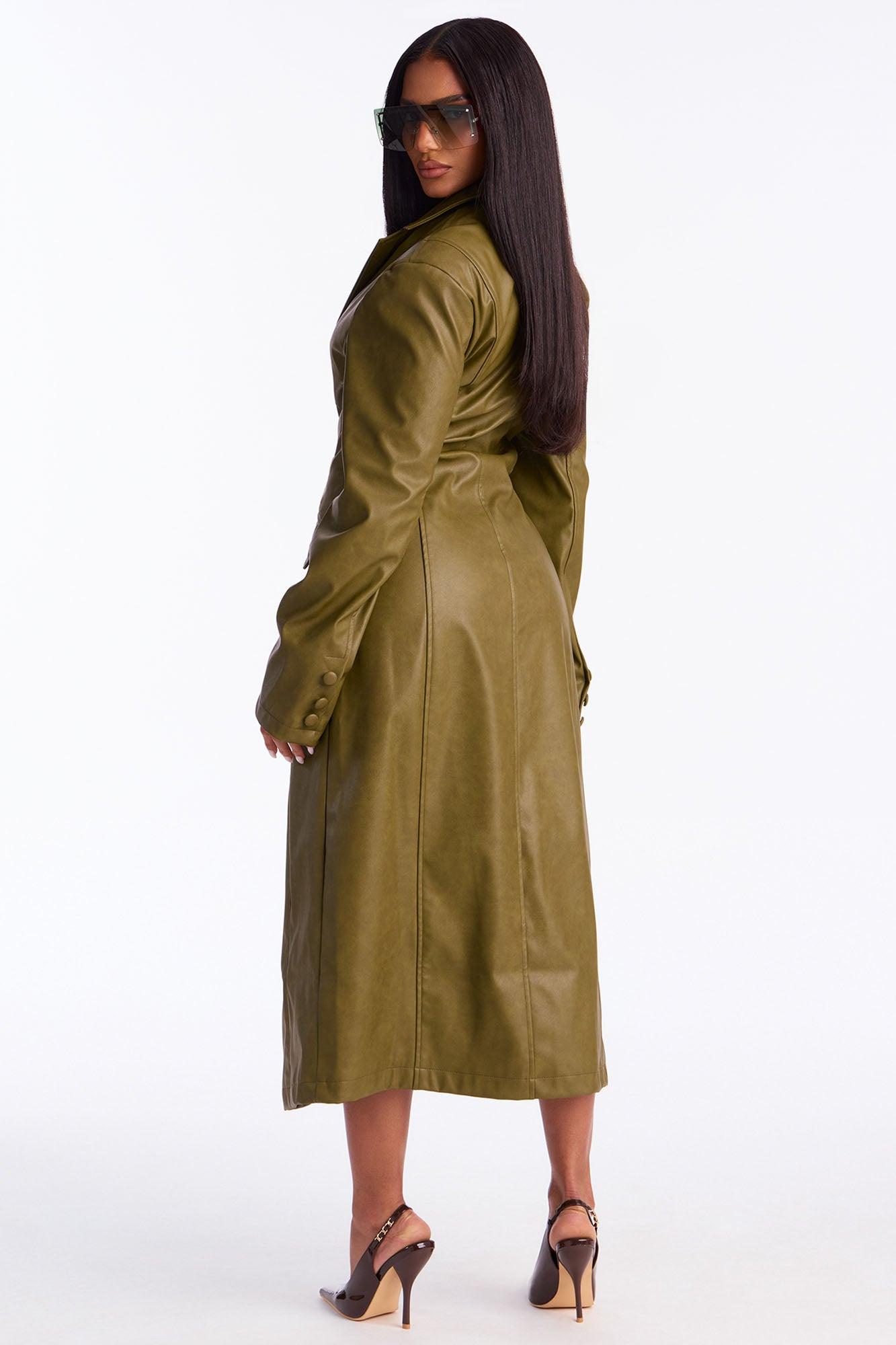 Available In Black, Cognac And Olive. Faux Leather Coat Collar Neckline Long Sleeves Button Closure Shoulder Pads Pockets Fully Lined Self Coating: 100% Polyurethane Self Backing/Lining: 100% Polyester Imported California Proposition 65WARNING: Cancer and Reproductive Harm - www.P65Warnings.ca.gov.