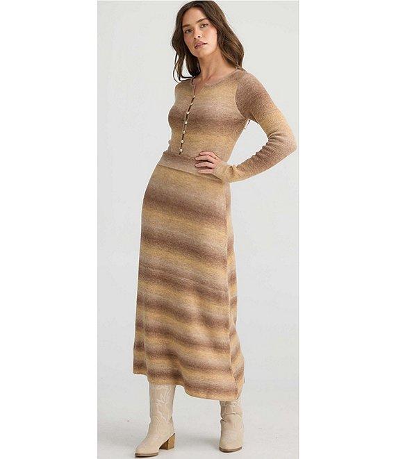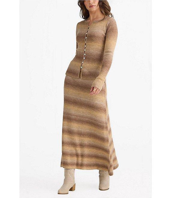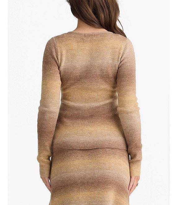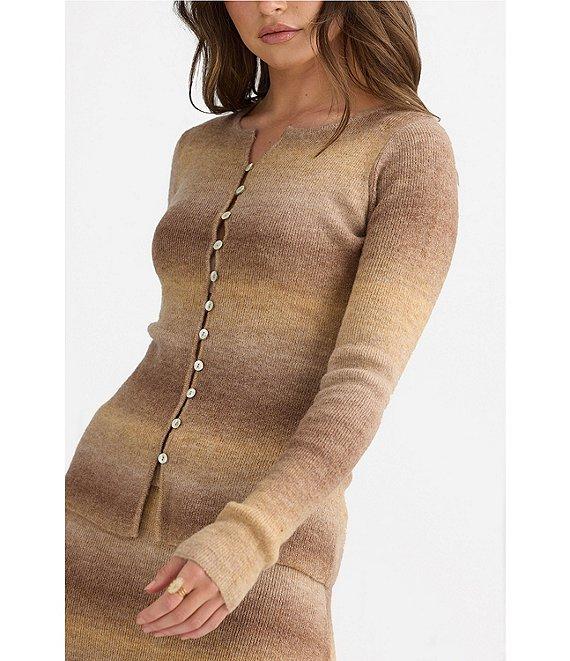 Talisman Essence Wool Blend Ombre Knit Round Neck Long Sleeve Button Closure Coordinating Top