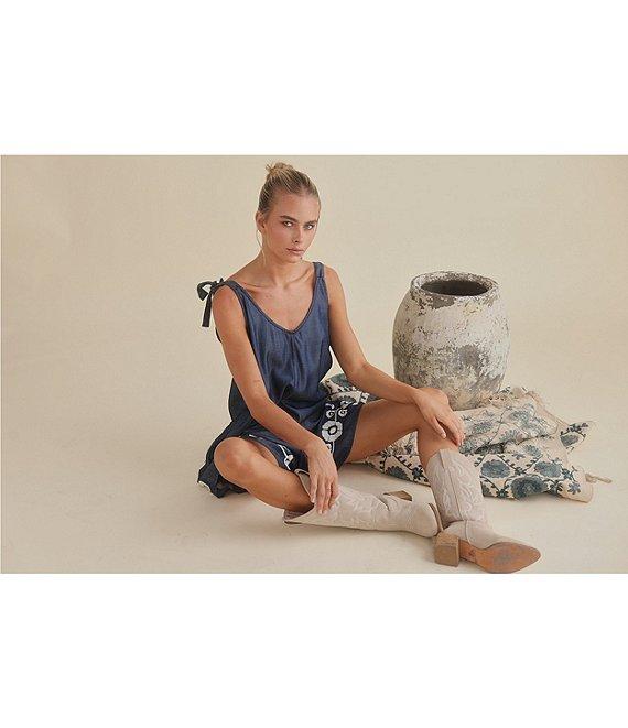 Talisman Temple V-Neck Sleeveless Floral Embroidered Mini Romper